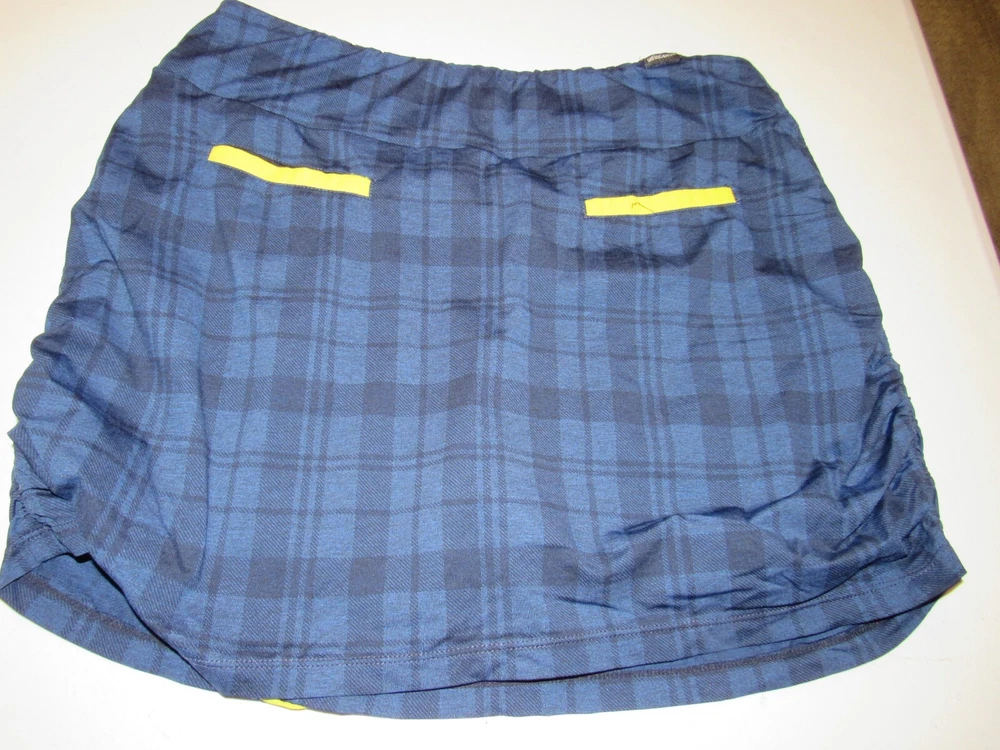 This Swing Dish skort is perfect for any golf enthusiast. The plaid pattern adds a touch of style to your activewear, while the pull-on closure ensures a comfortable fit. The skort is machine washable, making it easy to care for and suitable for all seasons. The skort features a lined interior, back pockets, and a short length, making it perfect for a day on the golf course. It is available in size L and fits regular size types. The Swing Dish brand is based in the United States and is not handmade. Get ready to look stylish and feel comfortable during your next golf game with this skort. The measurements are size L , waist 32"-34", and the length is 16". Comes from smoke free home. Will combine shipping and delivery confirmation. Thanks for looking !