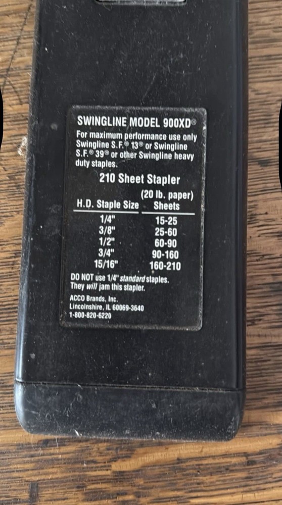 MPN: 900XD Stapler Type: Standard Stapler Model: 900XD Features: Heavy Duty, 210 Sheet Capacity Brand: Swingline