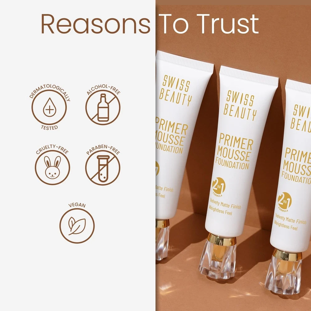 About this item SMOOTH FINISH: Swiss Beauty Primer Mousse Foundation provides a flawless matte finish that is perfect for those who prefer a shine-free look. SHEER COVERAGE: Perfect for everyday use, this primer foundation offers sheer coverage to let you slay with a second skin feel. LIGHTWEIGHT & SILKY TEXTURE: Mousse consistency ensures a weightless feel on the skin and gives all day long wear, while still covering blemishes and discolouration for a flawless complexion. WATER-RESISTANT & LONG-LASTING: The long-lasting formula ensures that your makeup stays in place without fading or creasing. BUILDABLE & BLENDS FLAWLESSLY: The foundation has a creamy texture that blends effortlessly into the skin, providing a natural-looking finish with a soft, matte effect\ Important information Ingredients: DIMETHICONE,DIMETHICONE/VINYL DIMETHICONE CROSSPOLYMER,CYCLOHEXASILOXANE,TITANIUM DIOXIDE,CI 77492,SILICA,VINYL DIMETHICONE,CI 77491,CI 77499 Directions: Prepare skin with Undercover Gel Primer. Take your index finger and dip it into the mousse foundation. Dab the product lightly on your face. Blend in the product using your fingers or a foundation brush. Apply concealer and compact to finish the look Product description Swiss Beauty Primer Mousse Foundation is the perfect product to achieve a flawless and long-lasting makeup look. This foundation has a lightweight and velvety formula that creates a smooth canvas while delivering a matte finish. The mousse consistency ensures a weightless feel on the skin, while still minimising the appearance of pores, covering blemishes and discolouration for a flawless complexion. The sheer coverage delivering formula is also suitable for all skin types, including sensitive skin, and is free from parabens and sulphates. Product description Swiss Beauty Primer Mousse Foundation is the perfect product to achieve a flawless and long-lasting makeup look. This foundation has a lightweight and velvety formula that creates a smooth canvas while delivering a matte finish. The mousse consistency ensures a weightless feel on the skin, while still minimising the appearance of pores, covering blemishes and discolouration for a flawless complexion. The sheer coverage delivering formula is also suitable for all skin types, including sensitive skin, and is free from parabens and sulphates. Product description Swiss Beauty Primer Mousse Foundation is the perfect product to achieve a flawless and long-lasting makeup look. This foundation has a lightweight and velvety formula that creates a smooth canvas while delivering a matte finish. The mousse consistency ensures a weightless feel on the skin, while still minimising the appearance of pores, covering blemishes and discolouration for a flawless complexion. The sheer coverage delivering formula is also suitable for all skin types, including sensitive skin, and is free from parabens and sulphates. Product description Swiss Beauty Primer Mousse Foundation is the perfect product to achieve a flawless and long-lasting makeup look. This foundation has a lightweight and velvety formula that creates a smooth canvas while delivering a matte finish. The mousse consistency ensures a weightless feel on the skin, while still minimising the appearance of pores, covering blemishes and discolouration for a flawless complexion. The sheer coverage delivering formula is also suitable for all skin types, including sensitive skin, and is free from parabens and sulphates. Product description Swiss Beauty Primer Mousse Foundation is the perfect product to achieve a flawless and long-lasting makeup look. This foundation has a lightweight and velvety formula that creates a smooth canvas while delivering a matte finish. The mousse consistency ensures a weightless feel on the skin, while still minimising the appearance of pores, covering blemishes and discolouration for a flawless complexion. The sheer coverage delivering formula is also suitable for all skin types, including sensitive skin, and is free from parabens and sulphates. Product description Swiss Beauty Primer Mousse Foundation is the perfect product to achieve a flawless and long-lasting makeup look. This foundation has a lightweight and velvety formula that creates a smooth canvas while delivering a matte finish. The mousse consistency ensures a weightless feel on the skin, while still minimising the appearance of pores, covering blemishes and discolouration for a flawless complexion. The sheer coverage delivering formula is also suitable for all skin types, including sensitive skin, and is free from parabens and sulphates. Product description Swiss Beauty Primer Mousse Foundation is the perfect product to achieve a flawless and long-lasting makeup look. This foundation has a lightweight and velvety formula that creates a smooth canvas while delivering a matte finish. The mousse consistency ensures a weightless feel on the skin, while still minimising the appearance of pores, covering blemishes and discolouration for a flawless complexion. The sheer coverage delivering formula is also suitable for all skin types, including sensitive skin, and is free from parabens and sulphates. Product description Swiss Beauty Primer Mousse Foundation is the perfect product to achieve a flawless and long-lasting makeup look. This foundation has a lightweight and velvety formula that creates a smooth canvas while delivering a matte finish. The mousse consistency ensures a weightless feel on the skin, while still minimising the appearance of pores, covering blemishes and discolouration for a flawless complexion. The sheer coverage delivering formula is also suitable for all skin types, including sensitive skin, and is free from parabens and sulphates. Product description Swiss Beauty Primer Mousse Foundation is the perfect product to achieve a flawless and long-lasting makeup look. This foundation has a lightweight and velvety formula that creates a smooth canvas while delivering a matte finish. The mousse 