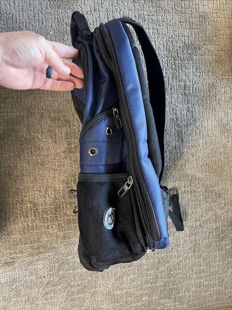 In very good condition. Slight wear under shoulder strap. See pictures please. Has a lot of pockets and a laptop section. All zippers work great. Very nice feeling backpack. Has a pocket for headphones and a space for sunglasses. Sold AS-IS and will not accept a return for any reason. Shipping is fast! International shipping is available via the Global Shipping Program (GSP) Please ask any questions, we reply 7 days a week.