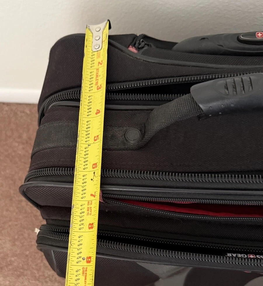 gtin13:Does not applyUPC:Does not applyMPN:naMaterial:NylonSize:17"Brand:SWISSGEARCountry/Region of Manufacture:UnknownGender:Unisex AdultPattern:SolidFeatures:Carry On, Laptop Compartment, Soft Case, Wheels/Rolling, Compartment for clothesType:SuitcasesColor:Black