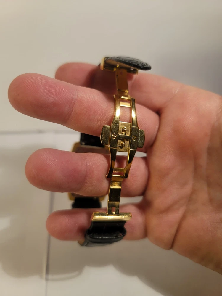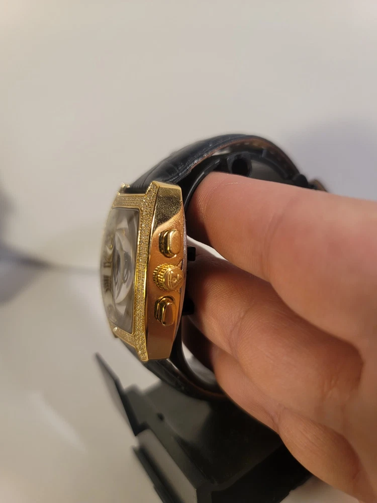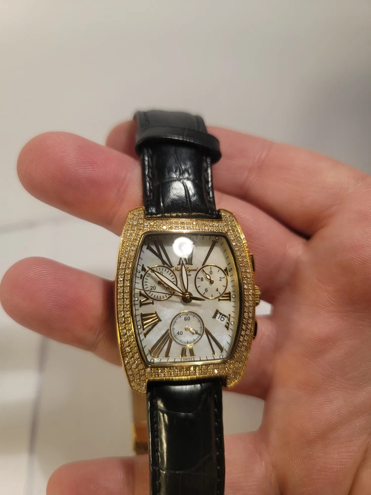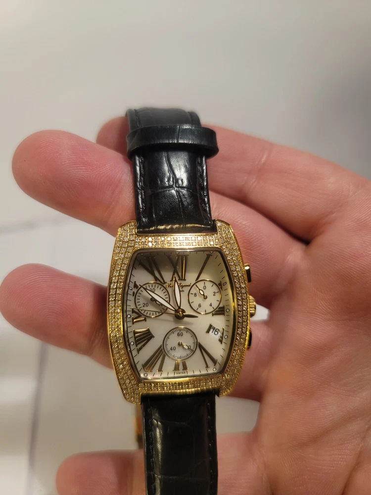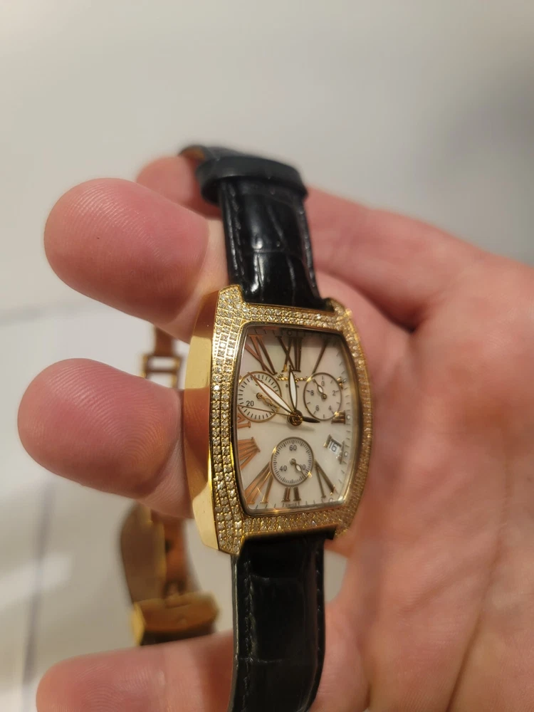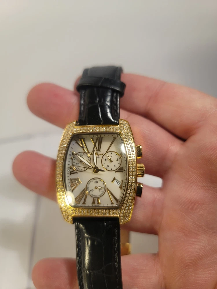 Swiss Legend Diamonds Women's 32mm Gold Watch - Mother Of Pearl Dial New Old Stock - A True Treasure Swiss Legend Diamond Bezel Men's Gold Watch - Mother Of Pearl Dial Gold Case & Black Leather Band with deployment clasp Please see all the pictures. This has a new battery and is ready for a new home. I AM A WATCH SELLER THIS IS NEW OLD STOCK. THIS HAS BEEN IN MY COLLECTION FOR A FEW YEARS. I AM SELLING IT NOW. IT'S NEVER BEEN WORN but it has sat on a display for a while . IT MAY HAVE SMALL IMPERFECTIONS #Swiss #watch #motherofpearl #diamond #gold