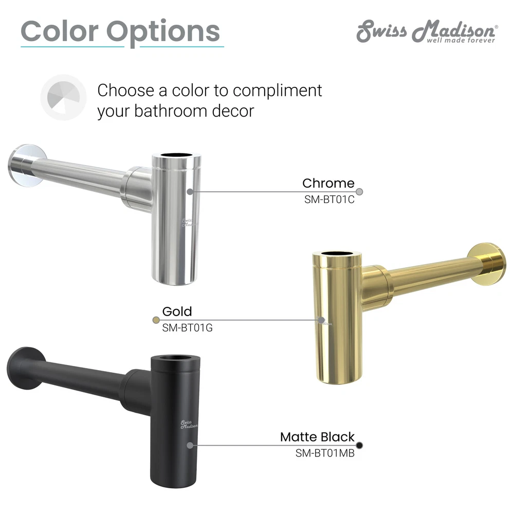 Powered by Frooition All Categories Swiss Madison SM-BT01 1-1/4" Circular Drain Assemblies - Less Overflow Overview Item Description The Swiss Madison Bottle Trap Drain provides an alternative to the traditional P-trap option, providing a more decorative solution to any bathroom with exposed plumbing. The smooth interior ensures there won’t be any unwanted odors or build-up. Available in multiple color variations, the bottle trap drain provides adaptability for any size needed. Swiss Madison SM-BT01 Features: Covered under Swiss Madison's 1 year limited warranty Constructed of brass For use in overflow applications Fits 1-1/4" drainconnections Swiss Madison SM-BT01 Specifications: Height: 5-1/4" (top to bottom) Width: 2" (left to right) Diameter: 2" (across the drain) Why Choose BuildInc? OUR PROMISE TO YOU About Us At Build, we promise to provide the best selection we can, most competitive pricing, and unmatched customer service. Our store has quality home improvement products from trusted manufacturers like Moen, American Standard, Delta, Kraus, Kichler, Progress Lighting, Schlage, Kwikset, Baldwin, Broan, NuTone, Air King, and Rev-A-Shelf. With over 200,000 home improvement products for you to choose from, we have just what you need to get your project done. Fast & Free Shipping We promise to make it our priority to get you your items as fast as we can. We ship from 440 warehouses around the country, ensuring that your product will get to you as soon as possible. We know you're eager to get your hands on your new purchase, we would be too. As a bonus, most items ship for free. Returns We are happy to accept returns of unused or defective items for a refund within 30 days from the date of delivery. For returns outside 30 days, please contact our Customer Service team to go over our options. For full details, please view the Shipping and Payments tab above. To initiate a return simply go to the eBay Returns Portal and submit a return request. We ask that all items be returned with all original components via a traceable method. Once your return is received and processed, we will quickly get your refund or replacement issued. If for any reason you are unsatisfied with your purchase or for product or warranty questions, please contact Customer Service team for assistance. More Items! View more great items! About Us | Shipping | Returns | Contact Us | FAQ | Collections | Special Offers! Powered by Frooition Frooition Frooition | No-js Template | eBay design, eBay store design, eBay shop design, eBay template design, eBay listing design (ver:froo_no_js) This listing is currently undergoing maintenance, we apologize for any inconvenience caused.