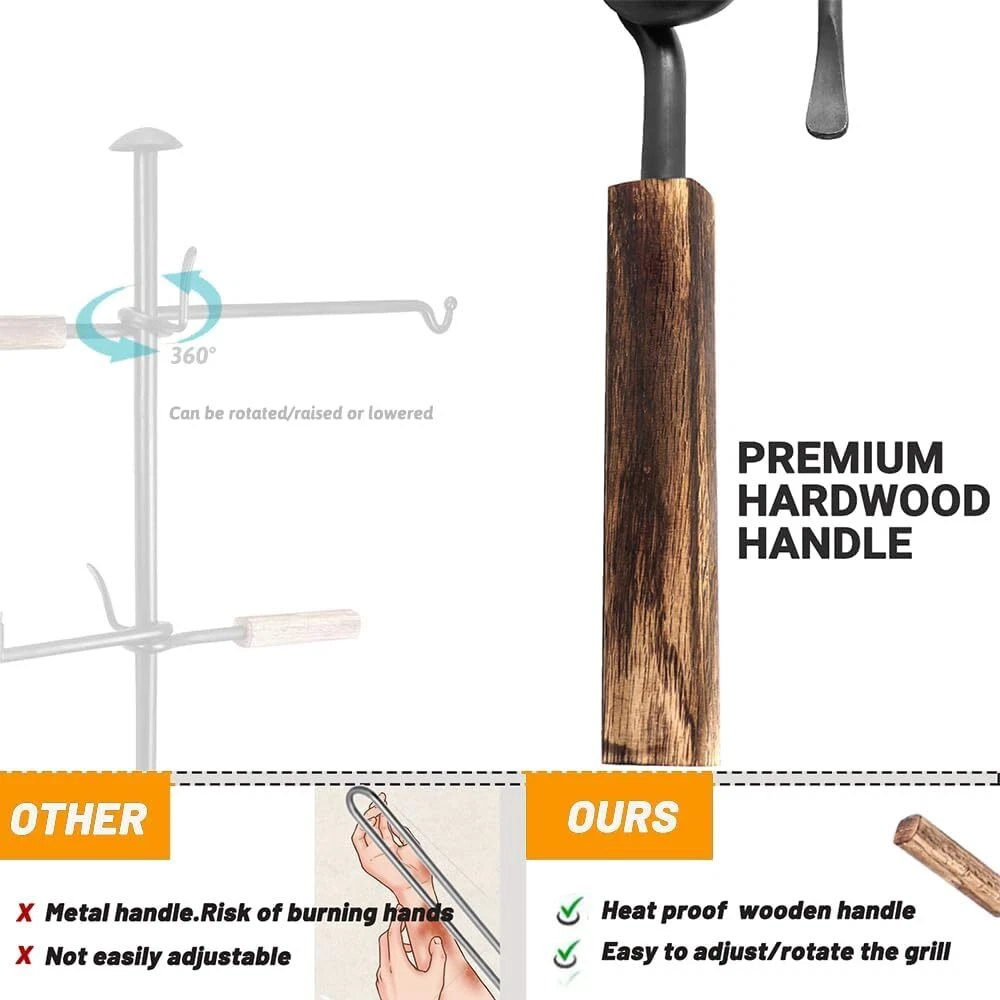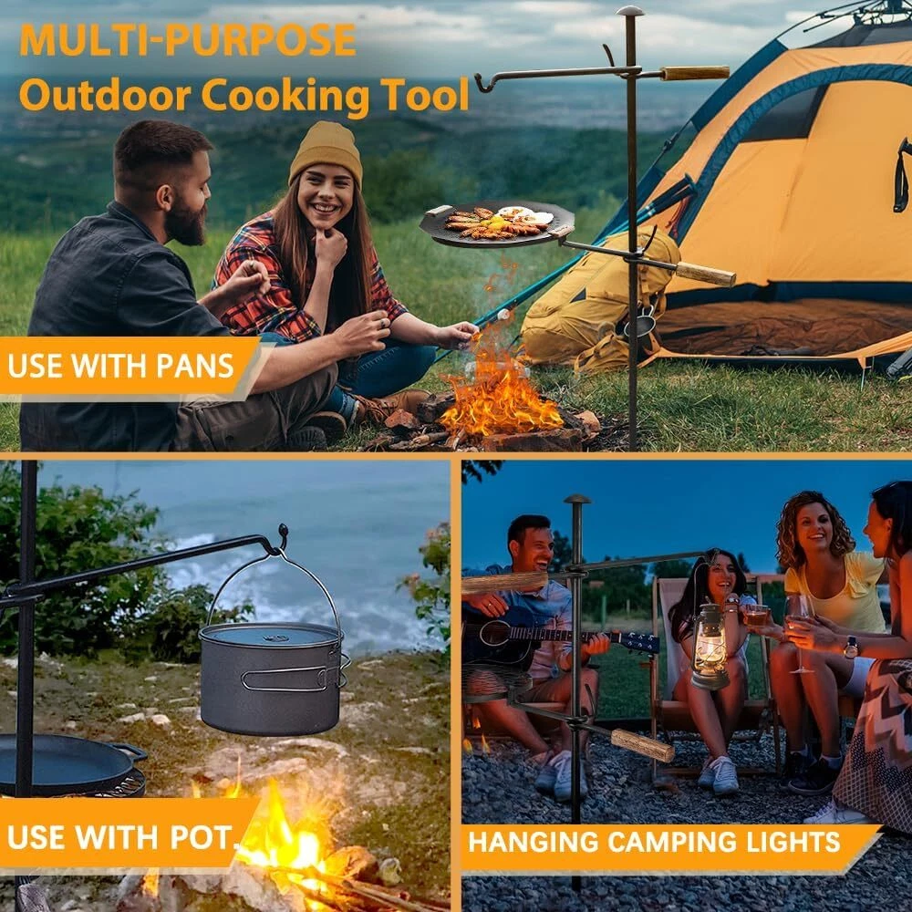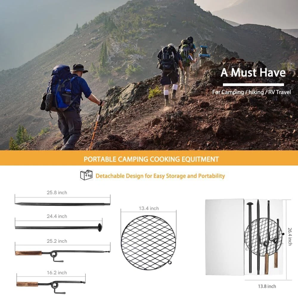 Product Description Brand Unbranded Fuel Type Liquefied Petroleum Gas Material Cast Iron Alloy Steel Product Dimensions 13.4"L x 14.8"W x 26.8"H Power Source hand_powered Item Weight 8.8 Pounds UPC 613965943703 About this item [Multipurpose Camp Kitchen Equipment]-With 13.4" grill grate and U-shaped hook, which can be used with cast iron dutch ovens/tea kettles/pan etc. A simple over fire pit grill can meet almost all your cooking needs (such as frying,stir-frying, boiling,etc.). [Premium & Sturdy]-Constructed of high hardness cast steel with anti-rust coating,Φ 0.8" main rod provides maximum stability and high weight capacity [Adjustable Height and Rotation]-With wooden handle for easy cooking height adjustment.Rotate,raise or lower for optimum warming or cooking temperature. [Exquisite Camping Grill]-Different from old-fashioned clunky grills.Our adjustable camping grill grate can be easily disassembled and stored.Folding size as 26.8"*14.8"*15".Perfect for RV camping / glamping activities/hiking / beach or backyard light parties. [Easy Installation]-No bolts required.Easy to assemble in just 4 steps.(To ensure stability, please insert the base rod into the ground more than 11-inch) BreeRainz Heavy Duty Fire Pit Grill Upgrade your campfire cooking experience today with the Swivel Campfire Grill This versatile grill is designed with a U-shaped hook and a circular grill pan, allowing you to easily attach a kettle, frying pan, other cookware to create delicious meals on your camping trips. Φ 0.8" main rod provides maximum stability and high weight capacity With wooden handle for easy cooking height adjustment.Rotate,raise or lower for optimum warming or cooking temperature. Easy to assemble in just 4 steps.(To ensure stability, please insert the base rod into the ground more than 11-inch) Previous page Next page Grill Grate Size Application Previous page Next page For Camping For RV Travel Previous page Upgrade your campfire cooking experience today with the Swivel Campfire Grill - your dependable companion for outdoor adventures. This versatile grill is designed with a U-shaped hook and a circular grilling plate, allowing you to easily attach a kettle, frying pan, or other cookware to create delicious meals on your camping trips. Φ 0.8" main rod provides maximum stability and high weight capacity With 13.4" grill grate and U-shaped hook, which can be used with cast iron dutch ovens/tea kettles/pan etc. A simple over fire pit grill can meet almost all your cooking needs (such as frying,stir-frying, boiling,etc.). With wooden handle for easy cooking height adjustment.Rotate,raise or lower for optimum warming or cooking temperature. No bolts required.Easy to assemble in just 4 steps.(To ensure stability, please insert the base rod into the ground more than 11-inch)