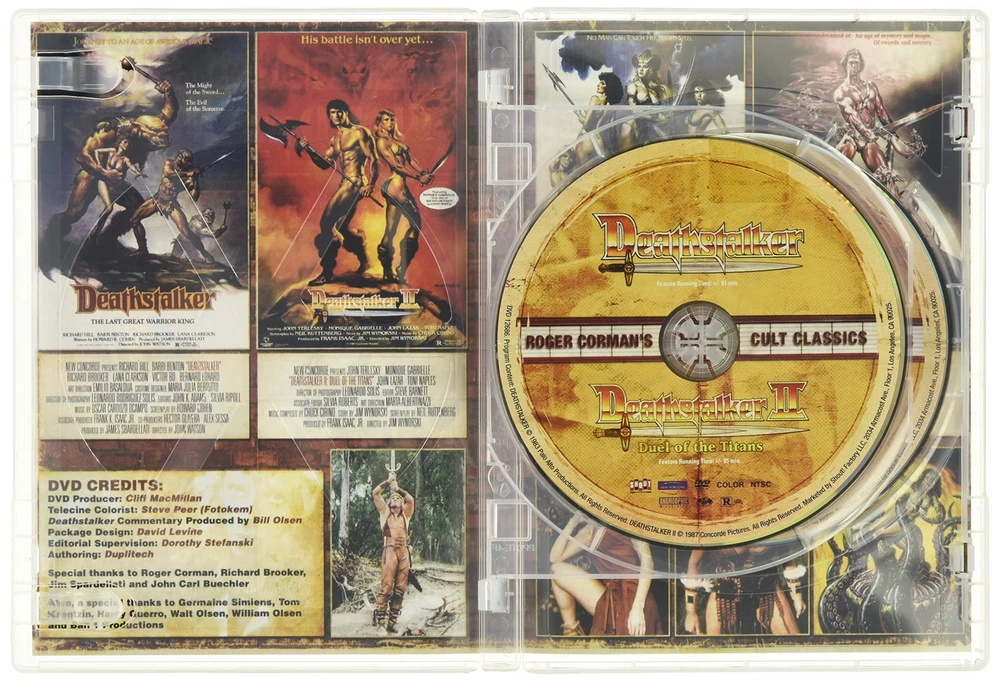 Roger Corman's cult classics includes Death stalker, Death stalker II, The Warrior and The Sorceress and Barbarian Queen. Factory sealed DVD