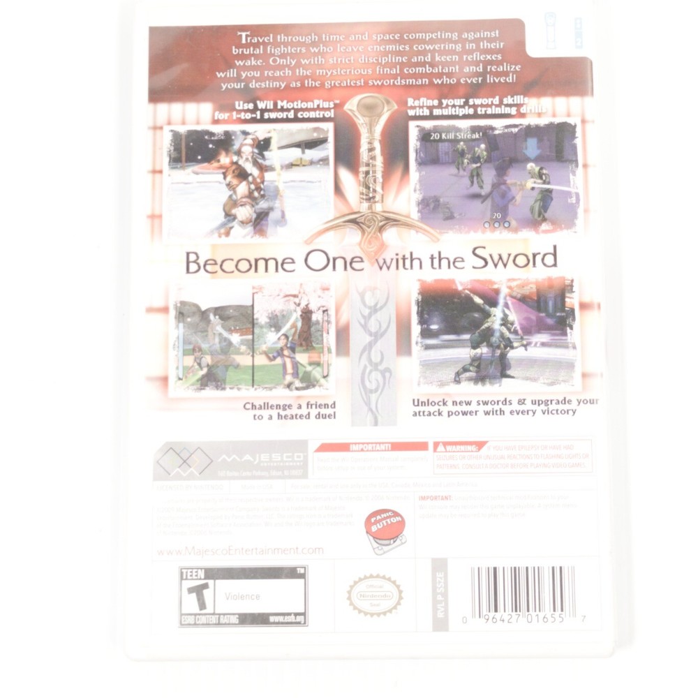 Region Code:NTSC-U/C (US/Canada)Seller Notes:“Very good Pre-owned condition with Manual”gtin13:0096427016557Features:Manual IncludedMPN:noneGenre:FightingCountry of Origin:United StatesGame Name:SwordsUPC:0096427016557Rating:T-TeenPlatform:Nintendo WiiVideo Game Series:SwordsFormat:NTSC (N. America)Publisher:Majesco