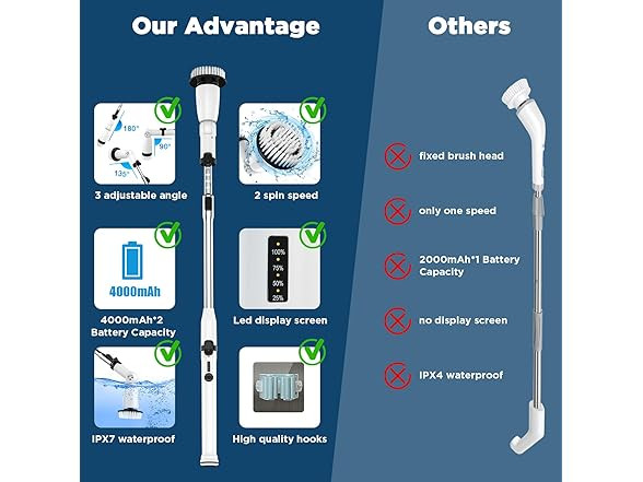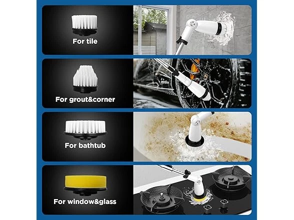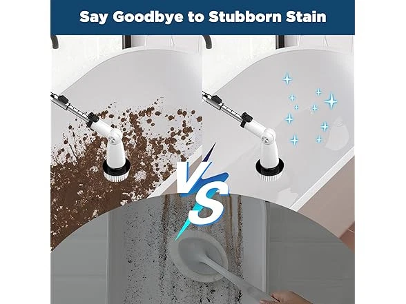 Swtroom Electric Spin Scrubber with Extended Handle and Brush Heads Condition: New Features ✅Efficient Cleaning with Dual Spin Speeds: Our electric cleaning brush offers optimal cleaning efficiency with two adjustable spin speeds. Select the 300 RPM mode for everyday cleaning or switch to the powerful 400 RPM mode for tackling tough grime and stains like soap scum and grout effortlessly. ✅Fast Charging, 180min Working Time: Experience unparalleled power and efficiency with our electric scrubber brush. It boasts an impressive 3-4 hour working time, significantly longer than similar products on the market which typically offer only 30-90 minutes of usage. Say goodbye to frequent interruptions during cleaning sessions as our brush provides a continuous cleaning experience for up to 180-240 minutes on a single charge.(Actual duration may vary based on your cleaning speed and the size of the area being cleaned) ✅ Retractable Handle for Comfort: Make cleaning a comfortable task with our electric spin scrubber featuring a retractable handle. Easily switch between two lengths to clean sinks and surfaces comfortably or reach those hard-to-access areas without bending over or kneeling. Let the brush handle the work for you. ✅Versatile Brush Heads for Every Surface: Our electric spin scrubber includes three interchangeable brush heads catering to various cleaning needs. The flat brush is perfect for large surfaces like floors, walls, glass, and grout, while the round brush is designed for curved surfaces such as bathtubs and sinks. Additionally, the corner brush head efficiently cleans hard-to-reach areas. Effortlessly eliminate grime and stains from every corner with the convenient one-button release design. ✅Easy to Use, Quality Assurance: Our electric cleaning brush is designed for utmost convenience and quality assurance. Assembly and disassembly are effortless, and it features USB-C quick charging compatibility with any 5V adapter. Unlike other spin scrubbers with fixed brush head angles, ours offers three adjustable angles (90°/135°/180°) for added flexibility and convenience, enabling you to clean without constantly changing positions. Specs Brand Swtroom Color White/Black Handle Material Stainless Steel+ABS Specific Uses For Product Floor, Basin, Carpet, Shower, Bathtub Product Dimensions 16"L x 3"W x 6"H In the Box: (1) Swtroom Electric Spin Scrubber with Extended Handle and Brush Heads