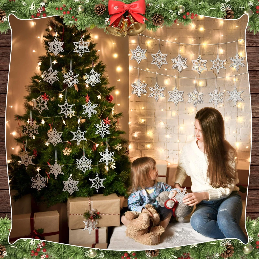 Features: These ornaments are perfect for dressing up Christmas trees, but they can also be applied for other indoor and outdoor decorations. They can be applied to decorate walls, ceilings or windows, adding a touch of winter charm to any area. With the traditional snowflakes design, these ornaments bring in the winter and holiday spirit to your home or business. The beautiful crocheted details make them aesthetically pleasing. Specifications: Main material: cotton Main color: white Size: about 3.15 inches/ 8 cm Package includes: 32 x Crochet snowflake ornaments Notes: Manual measurement, please allow slight errors on size. The color may exist a slight difference due to different screen displays. Sufficient Quantity: the package includes 32 pcs crochet snowflake ornaments in 16 styles, 2 pieces for each style; Rich quantities and style, you can generously sprinkle snowflakes across your decoration, creating a snowy Christmas environment Suitable Size: Christmas snowflake ornament measure approximately 3.14 inches/ 8 cm, lightweight and can be hung in places easily with ropes, portability, suitable for hanging on Christmas trees, doors, stairs, windows, walls, wreaths and many other place Comfortable and Sturdy: the Christmas tree decorations are designed using cotton thread, comfortable and solid, carefully woven and not easy to break, tear and deform, washable and reusable; Our crocheted snowflakes are designed to last for many upcoming years Elegant Design: our white snowflakes ornaments come in a beautiful and elegant white color, these Christmas ornaments mimic the actual snowflakes adding to the authenticity of your Christmas decor, and with any winter or Christmas color scheme Applicable Occasions: these Christmas tree crocheted ornaments can not only be applied at Christmas, but ideal for winter themed parties, holidays, festivals, etc., You can send them to your mates, family members, and other people as thoughtful presents