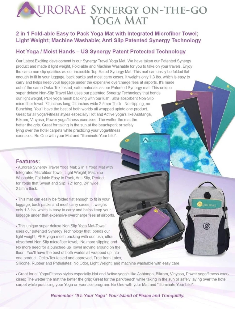 Synergy Foldable Travel Yoga Mat for Gym Workouts and On-The-Go Yogis with Storage Bag