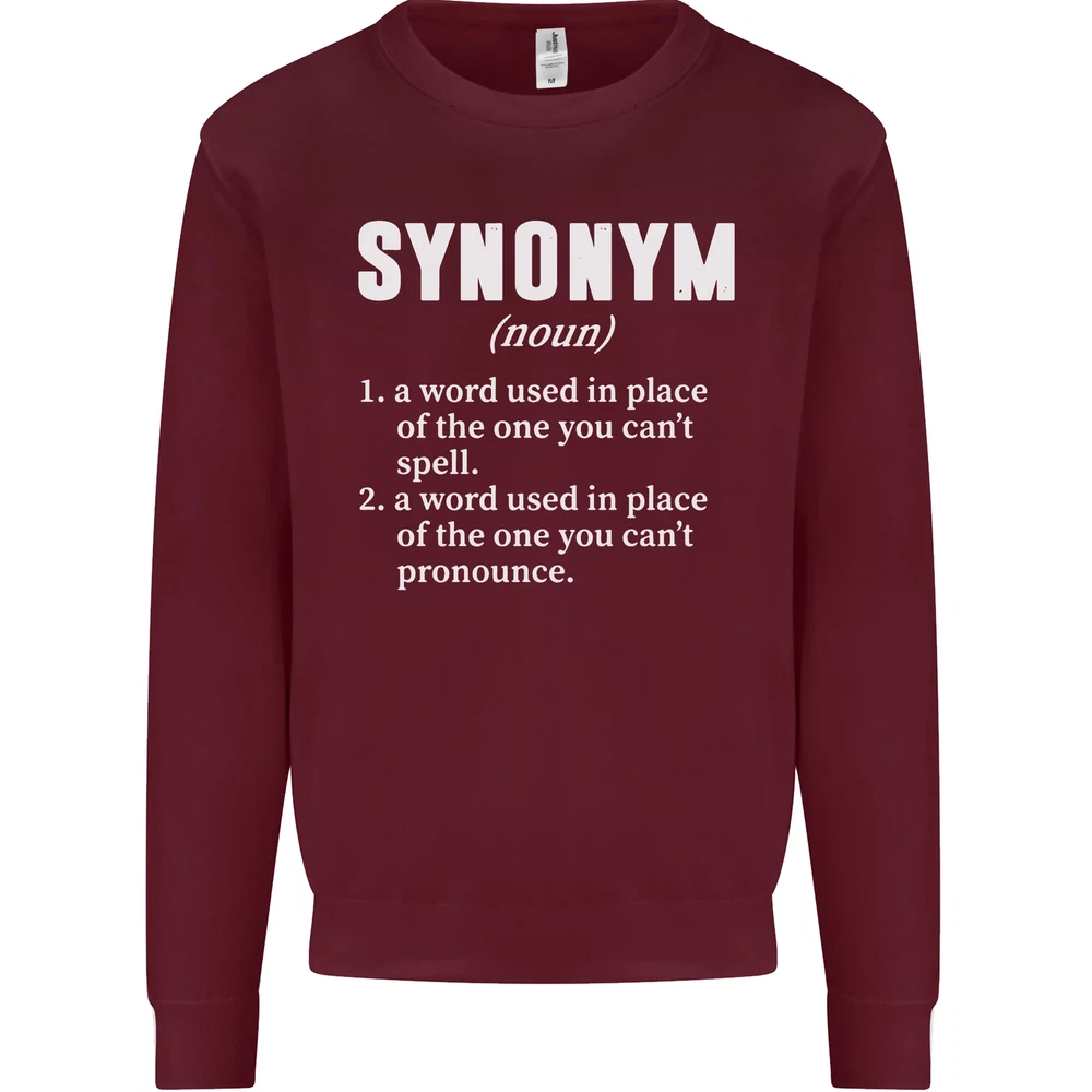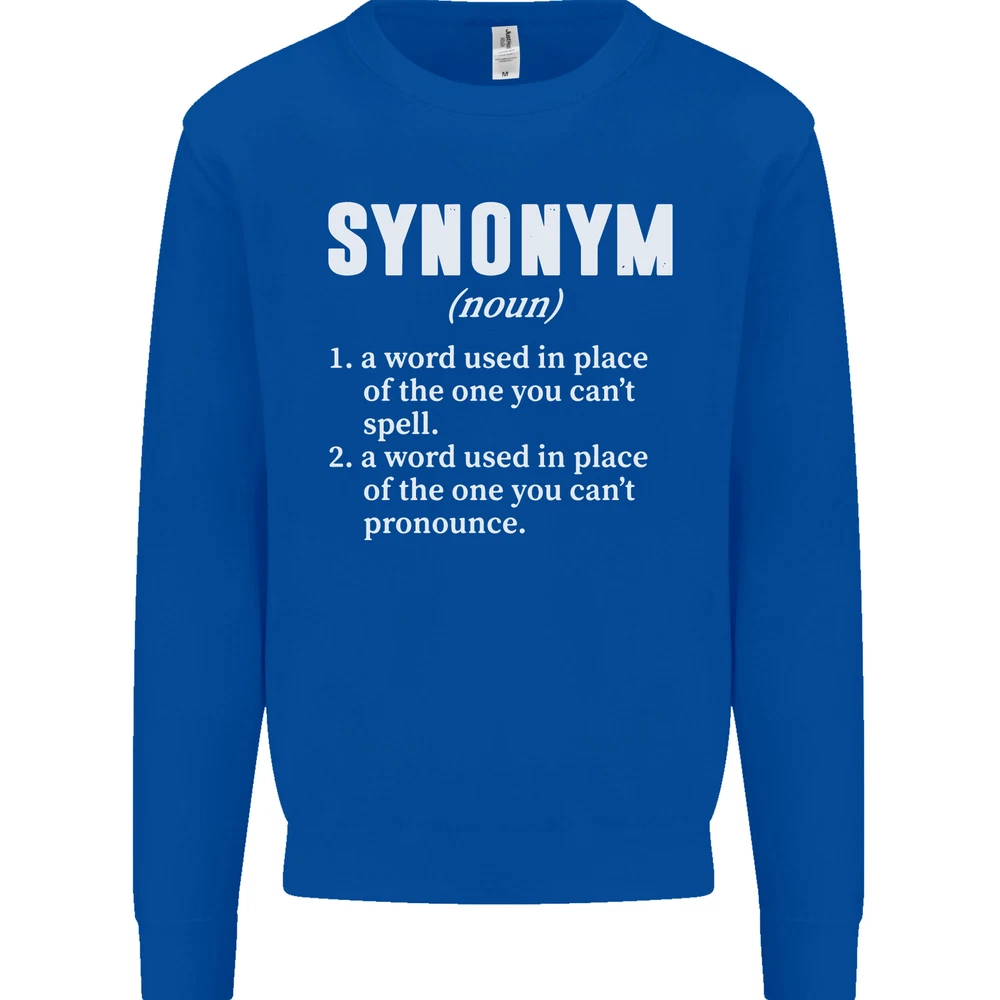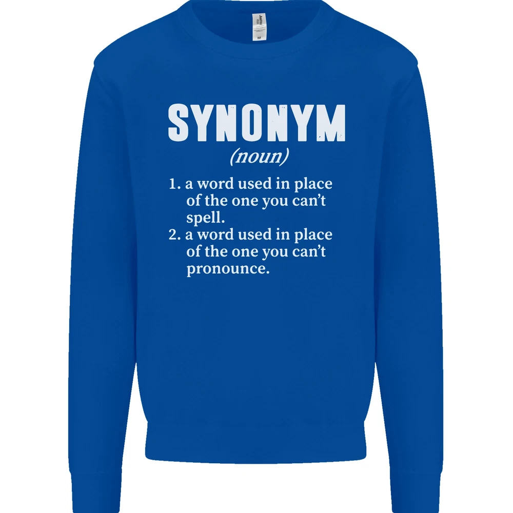 Synonym Funny Definition Slogan Mens Sweatshirt Jumper Sizes: S 36" M 40" L 44" XL 48" 2XL 52" 3XL 56" 4XL 60" 5XL 64" Professionally printed onto an adults AWDis Sweatshirt (Sweat) JH030N 280gsm Unisex Twin needle stitching detailing Ribbed cuff and hem Soft cotton faced fabric creates ideal printing surface Printed with eco-friendly inks that are safe to the skin and children Worldwide Responsible Accredited Production (WRAP) certified production Training shoe with low-to-the-ground feel. Upper: Welded-TPU support overlays in the heel, toe cap and quarter. Dual mesh provides closed mesh in the lower quarter and breathable mesh throughout. Texture screened toe cap for protection. Description & Size Chart Adults AWDis Sweatshirt (Sweat) JH030 280gsm Unisex Twin needle stitching detailing Ribbed cuff and hem Soft cotton faced fabric creates ideal printing surface Worldwide Responsible Accredited Production (WRAP) certified production Printed with eco-friendly ink, which are safe to the skin and children. Alternative Styles This design (where appropriate), and many more like it, are available on the following styles: Best Selling Collections On the Darkside Birthdays Pets \ Animals Gym & Fitness Father's Day Sport Funny Biker Special Occasions Martial Arts LGBT Christmas Shipping All orders are shipped within one working day. Due to circumstances out or our control, or busy times of the year, this could be extended to two working days. Returns Returns are accepted within 60 days of delivery providing that the item is returned in the original condition and all tags are intact (where applicable) and has not been worn. Please ensure that the item is returned clean and free of pet hair. To return an item please use eBay's return system, which can be located by finding your order in your account and selecting the return option. eBay integration by