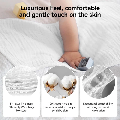 Synrroe Burp Cloths Large, Muslin Burp Cloths for Baby, Extra Absorbent and Soft, 6 Layers 20 by 10 Inches 100% Cotton (White Large 4 Pack) Product Details Color: White Brand: Synrroe Towel form type: Baby Burp Cloth Material: Cotton Product Dimensions: 20"L x 10"W Number of Items: 4 Style: Casual Pattern: Solid Special Feature: Super Soft|Super Absorbent|Quick Dry Theme: No Theme Product Care Instructions: Machine Wash Shape: Rectangular Size: Large 4 Pack Unit Count: 4.0 Count Fabric Type: Cotton Customer Package Type: Standard Packaging Item Weight: 0.29 Pounds Is Discontinued By Manufacturer: No Material Type: Cotton Material Composition: 100% Cotton Additional product features: Super Soft|Super Absorbent|Quick Dry Batteries required: No Item Weight: 4.7 ounces Color: White Brand: Synrroe Towel form type: Baby Burp Cloth Material: Cotton Product Dimensions: 20"L x 10"W Cotton Super soft, Our muslin burp cloths is made of first class cotton, super soft, very comfortable to touch, like touching the cakes Absorbent, our burp cloths is really absorbent, it can absorb liquid in seconds Quick dry, the muslin burp cloths is quick dry, 50% quicker than normal cloths Pre washed, the muslin burp cloths is pre washed, has folds, which helps making the cloths softer and less shrinkage. Flattened before hanging preferred Very healthy, the muslin burp cloths can be quicker dry than normal cloths, and air can flow more freely among layers, very healthy to use, especially for babies