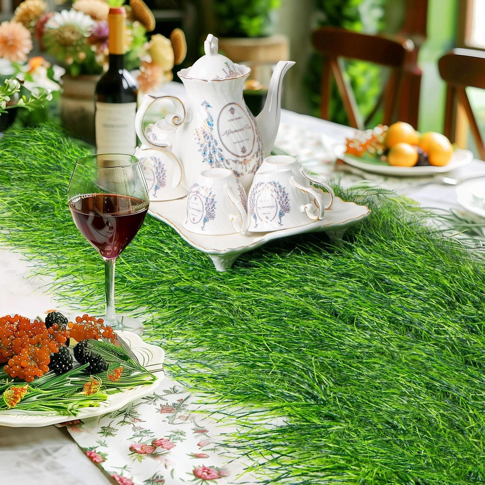 Faux thatch green table runner with evergreen and realisic appearance, ideal for easter,st patricks day, farmhouse party, birthday, garden party decor, holidy, wedding, DIY craft, home decor 【PREMIUM QUALITY】- thatch grass table runner is made of advanced UV resistant PE material, polyethylene fabric and durable latex backing. The thatch straw grass is waterproof, fireproof, anti-bite, it is perfect for indoor and outdoor table decor. 【FLUFFY GRASS TABLE RUNNER】- Faux thatch grass runner has evergreen and realistic appearance, which offer durability and longevity, not easy to decay. The tropical faux turf is non-and lead free, so feel at ease to allow your pets and to play on. No mowing, no watering, no spraying, no fertilizing, the synthetic grass table runner needs no maintenance and looks perfectly fresh and green all year round. 【MULTIUSE GRASS RUNNER】- Perfect for Spring Summer Fall Holidays, weddings, easter, receptions, parties, catered presentations, bridal and baby showers, birthdays, candy buffets, dessert tables and more. Ideal for dishes, table, desk and house decoration. The synthetic grass runner looks extra lush, feels great for dinners. 【EASY TO CLEAN & STORAGE】- The fake grass table runners can be packed in rolls for easy carrying and storage. Just shake the thatch straw table runner, then the above debris or dirt can drop quickly, then flush with a water pipe, and dry it. 【DIY CUT FOR YOUR NEEDS】- The faux grass table runners are easy to cut and can be trimmed to fit your unique design needs, making your special DIY craft. If you are not happy with the product for any reason, please do not hesitate to us. All issues will be solved within 24 hours. Your satisfaction is our priority.