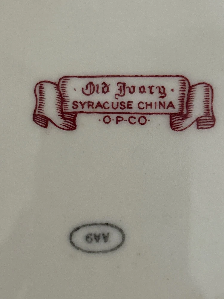 Set Includes: Salad Plate Production Technique: Pottery Vintage: Yes Time Period Manufactured: 1950-1959 Color: Multicolor Occasion: All Occasions Theme: Fruit Country/Region of Manufacture: United States Brand: Syracuse China Shape: Round Type: Salad Plate Backstamp: Printed Material: Ceramic