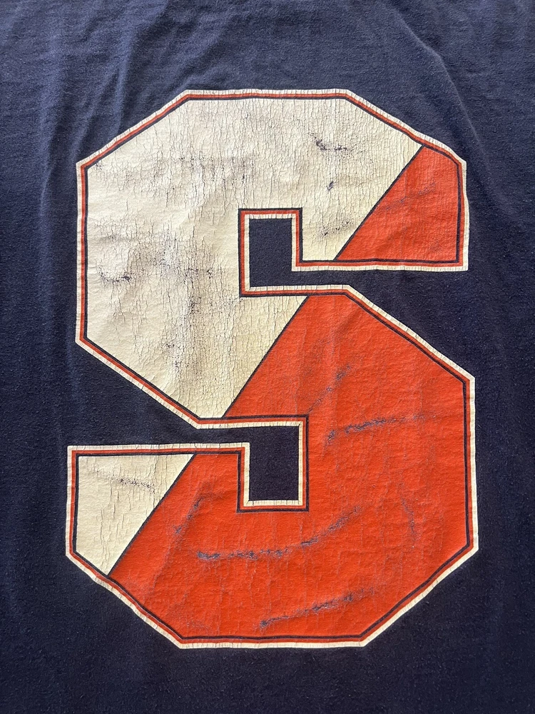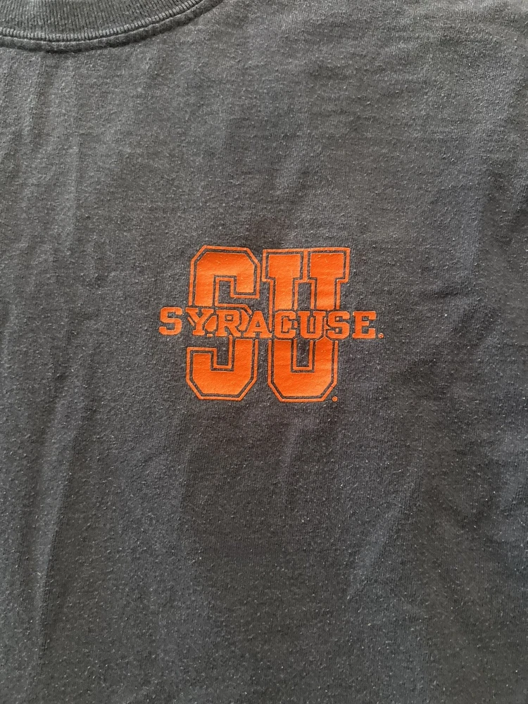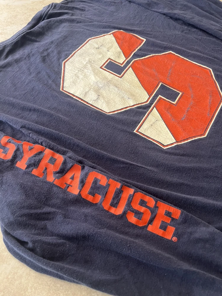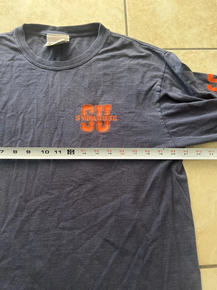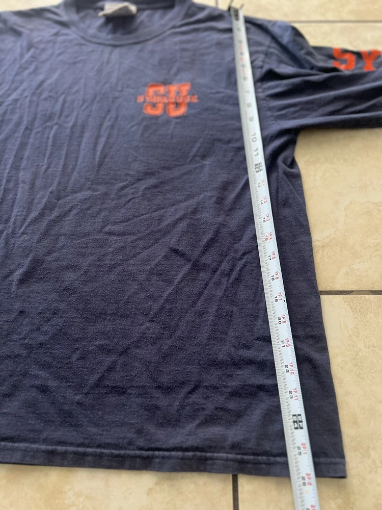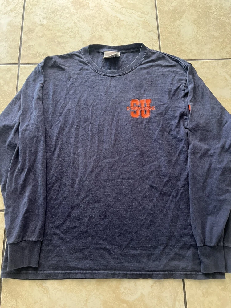 Show off your team spirit with this blue long-sleeved shirt featuring the Syracuse Orange team logo. Made for men, this shirt is perfect for football season and is available in size L. The shirt is made by Winnerscircle and is an officially licensed NCAA product. This shirt is perfect for any fan of the Syracuse Orange team looking to show their support. The blue color and orange team logo make it a stylish addition to any fan's wardrobe. Whether you're at the game or just out and about, this shirt is sure to turn heads and show your love for the team.