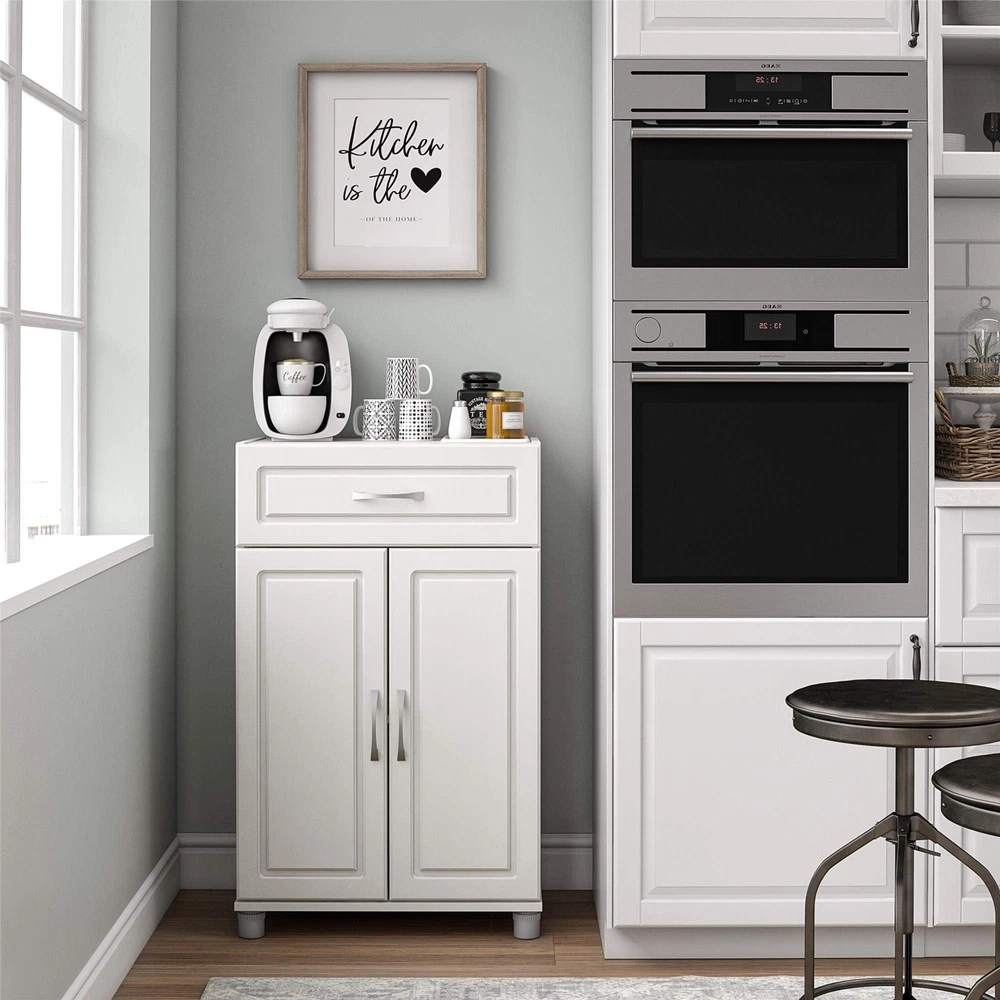SystemBuild Evolution Kendall 24" 1 Drawer/2 Door Base Storage Cabinet - White SystemBuild 24” 1 Drawer/2 Door Base Storage Cabinet can be used in almost any room This item is perfect to store bed sheets and linens or overflow items from your kitchen Assembled dimensions: 38.25"H x 23.44"W x 15.38"D Drawer features full-extension drawer slides for easy access to contents Cabinet features 1 adjustable and 1 fixed shelf to customize your storage white 2 door doors 1 drawer drawer Add convenient storage space to your home with the Systembuild Evolution Kendall 24" 1 Drawer/2 Door Base Storage Cabinet. This Base Cabinet features a top drawer for easy access to contents. Behind the 2 doors, you'll find 1 adjustable and 1 fixed shelf. The 24" 2 Drawer/2 Door Storage Cabinet features a crisp neutral finish that creates a refined, clean look in your home. Use this piece as a stand-alone item, or combine it with additional Systembuild Evolution Kendall storage items to create the perfect storage solution for your home. Systembuild Evolution 24" 1 Drawer/2 Door Base Storage Cabinet requires assembly upon delivery. Countertops not included. Shipping We offer FREE shipping on all orders! We use a selection of shipping services such as UPS, FedEx, USPS etc. We only ship to the lower 48 states, no APO/FPO addresses or PO Boxes allowed. Local pickups and combined shipping options are not provided at this time. Return You can return a product for up to 30 days from the date you purchased it. Any product you return must be in the same condition you received it and in the original packaging. Please keep the receipt. Payment We accept payment by any of the following methods: PayPal Please pay as soon as possible after winning an auction, as that will allow us to post your item to you sooner! Feedback Customer satisfaction is very important to us. If you have any problem with your order, please contact us and we will do our best to make you satisfied. Contact Us If you have any queries, please contact us via ebay. We usually respond within 24 hours on weekdays. Please visit our eBay store to check out other items for sale! Thank you for shopping at our store.