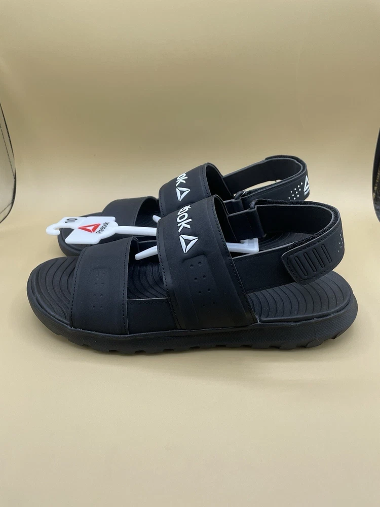 New with tag attached, No Shoebox EVA Comfort Footbed Lightweight Construction Black color. Water friendly Reebok Women’s athletic Sandals for everyday beach/pool footwear.