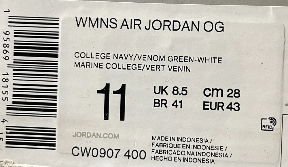 Size 11 US Nike Women’s Air Jordan OG college navy/ venom green-white Women Casual Lifestyle Shoes brand new no shoebox Comfort and style all together for everyday footwear