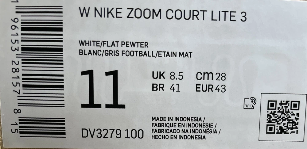 Brand new no shoebox Women’s Nike Zoom Court Lite 3 White / Flat Pewter DV3279 100 Tennis sneakers regular fit.