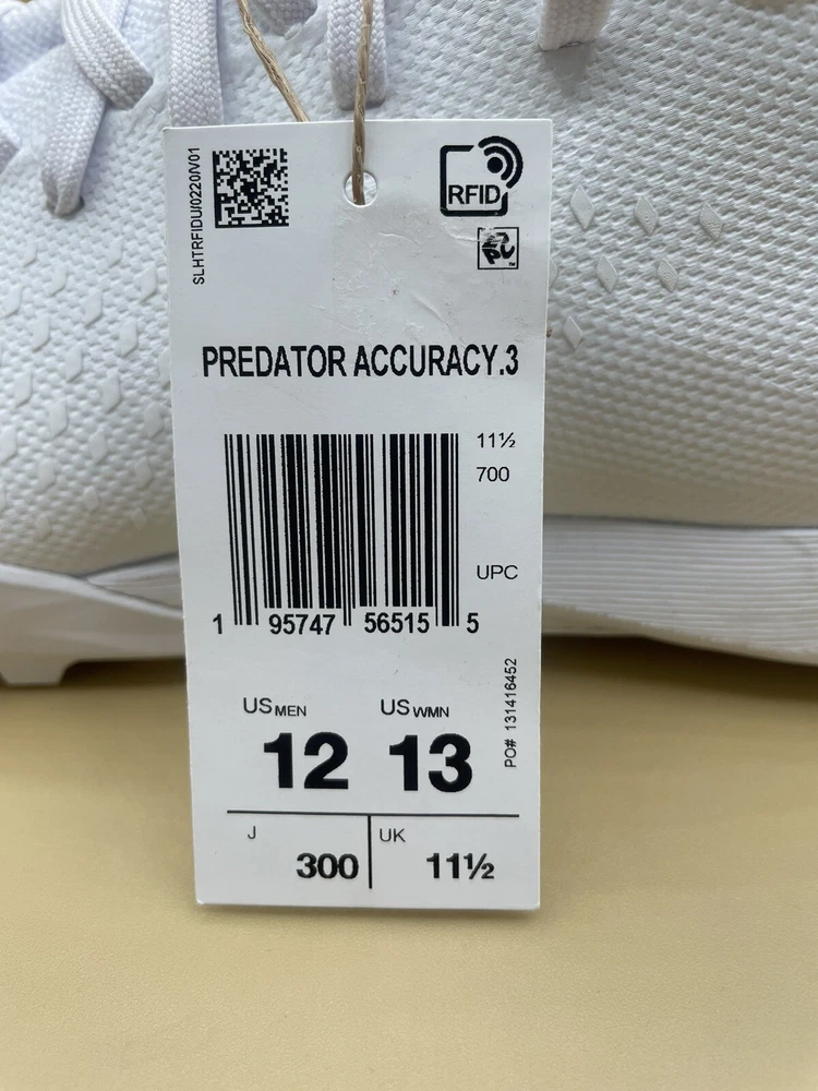Brand new No shoebox adidas men’s Predator Accuracy.3 TF WHITE Turf Soccer Shoes. COMFORTABLE AND STYLISH IN AND OFF THE FIELD EVERYDAY FOOTWEAR