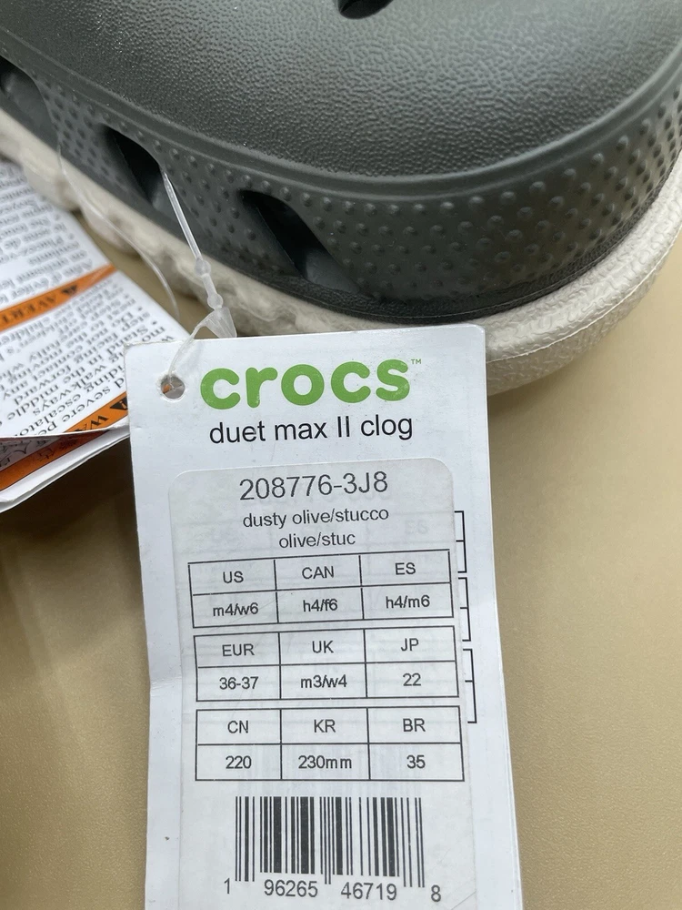 NEW NO SHOEBOX WITH TAG ATTACHED Crocs Iconic comfort Clog Unisex sizes: Men’s 4/ Women’s 6 US Dusty olive / Stucco color Adjustable Strap WATER RESISTANT COMFORTABLE AND STYLISH EVERYDAY FUN FOOTWEAR