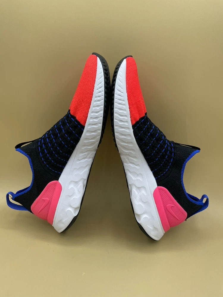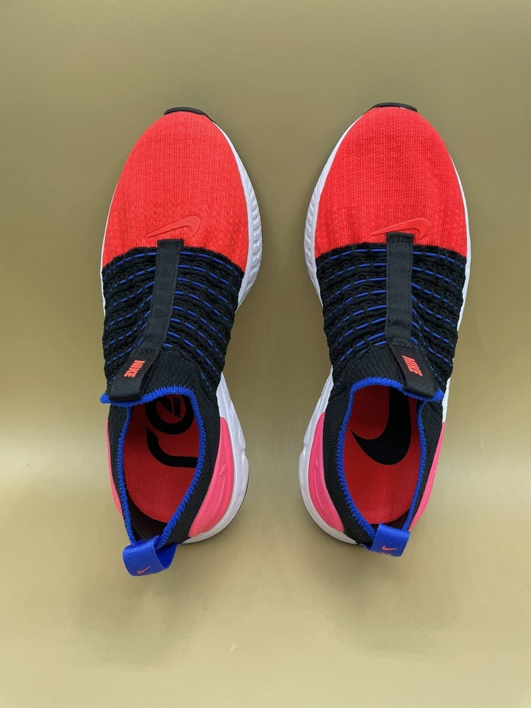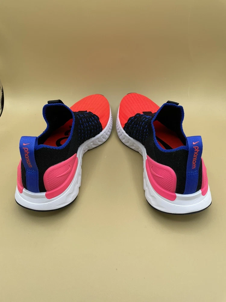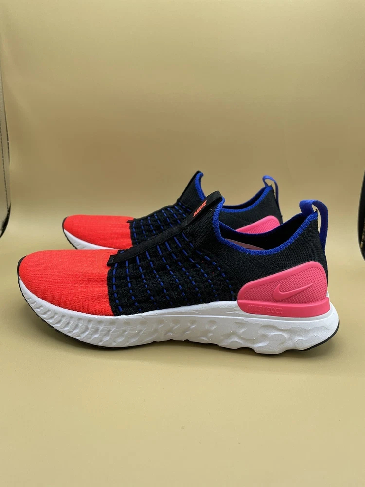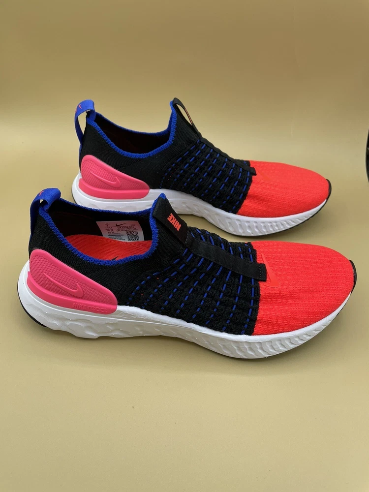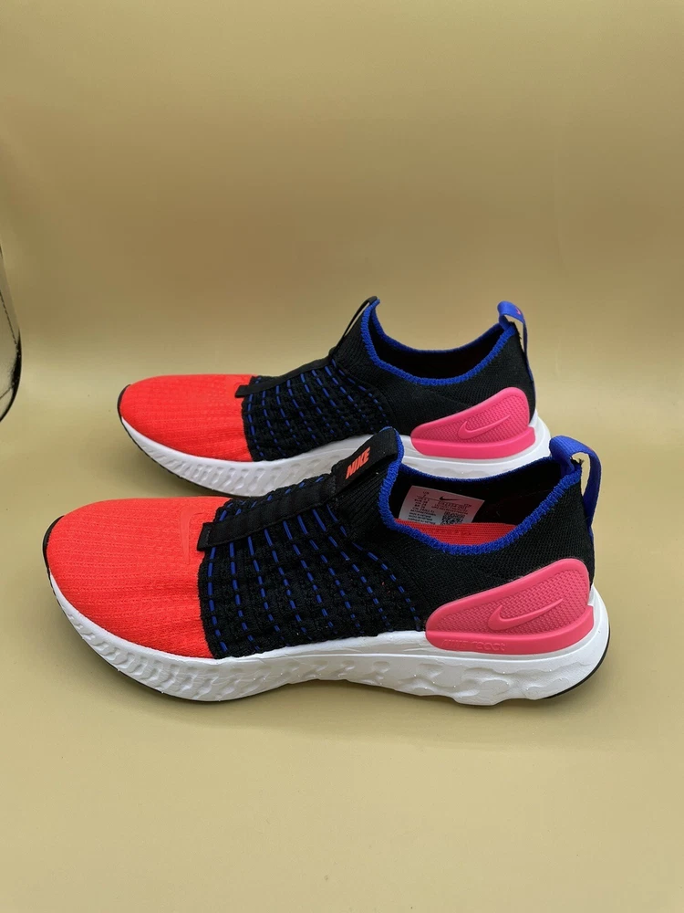 BRAND NEW NO SHOEBOX NIKE WOMEN’s REACT PHANTOM RUN FLYKNIT 2 SLIP ON BLACK/BRIGHT CRIMSON GEL NEON SNEAKERS DX2354-001 Lightweight easy slip on running sneakers for fast comfortable everyday duties