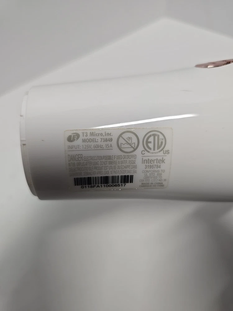 T3 73849 Hair Dryer Featherweight 3i Professional Ionic White w/Rose Gold. Dryer only