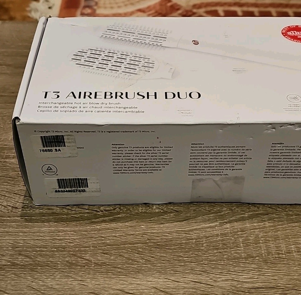 T3 Micro AireBrush Duo Interchangeable Hot Air Blow Dry Brush - White free ship.