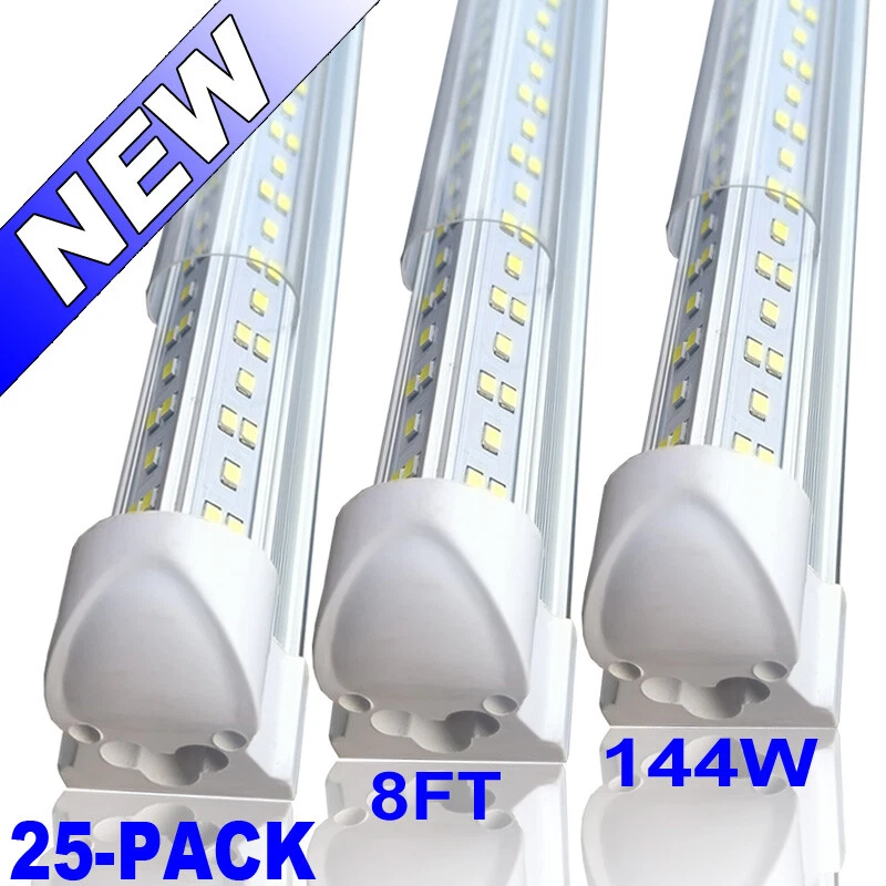 FAST DELIVERY - Ship from New Jersey or Los Angeles Warehouse via FedEx , 3-7 Days Delivered Your Door . SCIENTIFIC DESIGN - 8Ft LED Shop Lights Fixture is Made of 6500K Cold White SMD2835 LED Chip ,Plastic Clear Cover , Aluminum Bracket Housing ,and AC85-277V Constant Current Driver . It can work in -68F to 120F Temperature Conditions EASY INSTALLATION - The Integrated Tube Fixture Can be Install on Wall or Ceiling ,Easily Replace Traditional Fluorescent Tube Bulb . Plug and Play , Free Accessories (Power Cords, Connector , Extension Cords , Clip and Screw ) Come with Tube Lights Together WIDE APPLICATION - Linkable 8Ft Bulbs Widely Used in Garage Ceiling , Barbershop , Schools, Hospitals Basement , Factory Warehouses , Supermarkets Cooler Door , Offices, Shops,Hotels, etc T8 8ft LED Tube Light Bulbs 8Foot LED Shop Light Fixture 144W 6500k 18000lm 25PC FAST DELIVERY - Ship from New Jersey or Los Angeles Warehouse via FedEx , 3-7 Days Delivered Your Door . SCIENTIFIC DESIGN - 8Ft LED Shop Lights Fixture is Made of 6500K Cold White SMD2835 LED Chip ,Plastic Clear Cover , Aluminum Bracket Housing ,and AC85-277V Constant Current Driver . It can work in -68F to 120F Temperature Conditions EASY INSTALLATION - The Integrated Tube Fixture Can be Install on Wall or Ceiling ,Easily Replace Traditional Fluorescent Tube Bulb . Plug and Play , Free Accessories (Power Cords, Connector , Extension Cords , Clip and Screw ) Come with Tube Lights Together WIDE APPLICATION - Linkable 8Ft Bulbs Widely Used in Garage Ceiling , Barbershop , Schools, Hospitals Basement , Factory Warehouses , Supermarkets Cooler Door , Offices, Shops,Hotels, etc