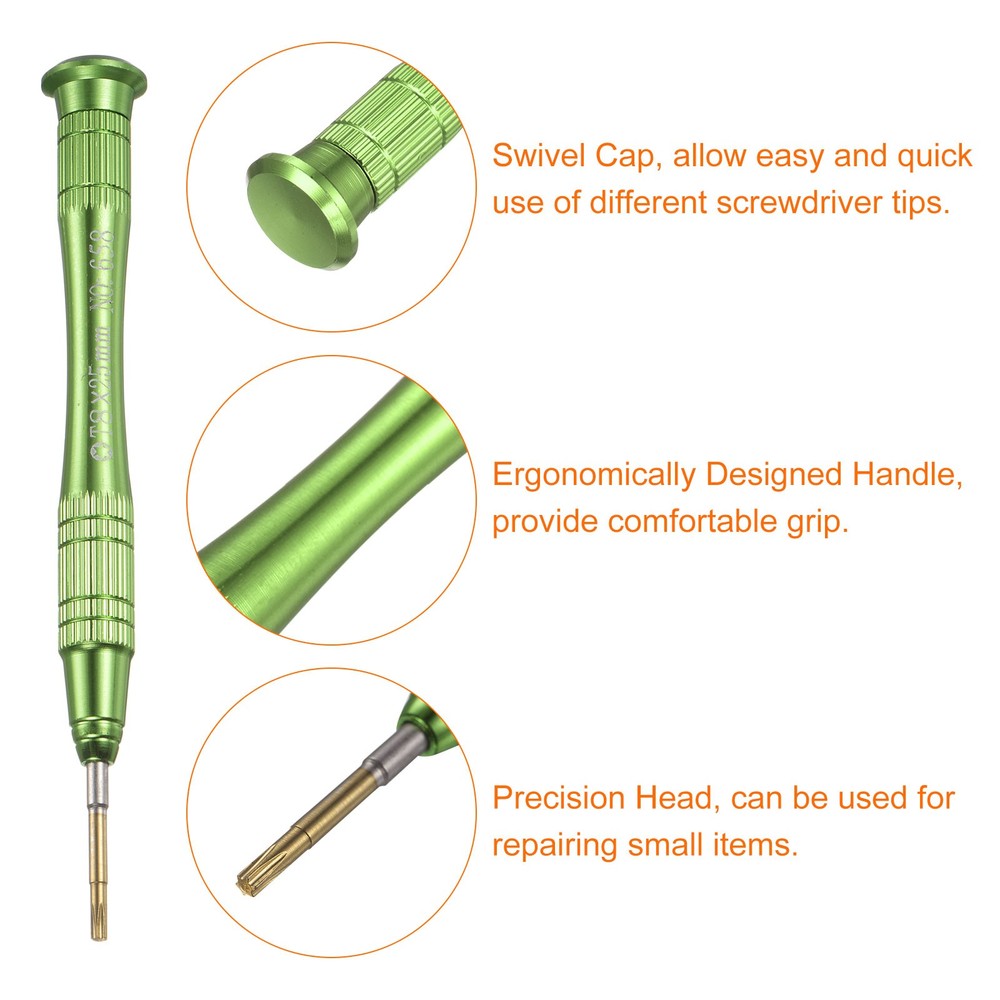 Document The mini magnet screwdriver is made of S2 material, a high-hardness material commonly used in hardware, good for electronic equipment.Ergonomic pen-shaped design aluminum alloy handle provides comfortable grip and excellent control.The tiny screwdriver has a swivel cap at the end of the handle to allow easy and quick use of different screwdriver tips.This small screw driver head features a magnetic design that holds small screws securely in place, preventing them from being lost or misplaced during repairs, allowing you to handle tiny components with precision and efficiency.This pen-style manual screwdriver is suitable for a variety of electronic devices and gadgets, such as repairing cell phones, watches, glasses, cameras, laptops, game consoles, keyboards and other electronic devices.Notice: To prevent damage to the screw and the drill, please do not attempt to turn screws with mismatched sizes. T8 Precision Magnetic Torx Screwdriver with Non-slip Handle, Green The mini magnet screwdriver is made of S2 material, a high-hardness material commonly used in hardware, good for electronic equipment. Ergonomic pen-shaped design aluminum alloy handle provides comfortable grip and excellent control. The tiny screwdriver has a swivel cap at the end of the handle to allow easy and quick use of different screwdriver tips. This small screw driver head features a magnetic design that holds small screws securely in place, preventing them from being lost or misplaced during repairs, allowing you to handle tiny components with precision and efficiency. This pen-style manual screwdriver is suitable for a variety of electronic devices and gadgets, such as repairing cell phones, watches, glasses, cameras, laptops, game consoles, keyboards and other electronic devices. Notice: To prevent damage to the screw and the drill, please do not attempt to turn screws with mismatched sizes. Hot Item Payment 1.We accept eBay payment . 2.Payment must be received within 7 business days of auction closing. Shipping 1.We ship to your eBay or Paypal address. Please make sure your eBay and Paypal address is correct before you pay. 2.Items will be shipped within 1-3 business day when we received payment. 3.Delivery time depends on destination and other factors. Description Policy T8 Precision Magnetic Torx Screwdriver with Non-slip Handle, Green The mini magnet screwdriver is made of S2 material, a high-hardness material commonly used in hardware, good for electronic equipment. Ergonomic pen-shaped design aluminum alloy handle provides comfortable grip and excellent control. The tiny screwdriver has a swivel cap at the end of the handle to allow easy and quick use of different screwdriver tips. This small screw driver head features a magnetic design that holds small screws securely in place, preventing them from being lost or misplaced during repairs, allowing you to handle tiny components with precision and efficiency. This pen-style manual screwdriver is suitable for a variety of electronic devices and gadgets, such as repairing cell phones, watches, glasses, cameras, laptops, game consoles, keyboards and other electronic devices. Notice: To prevent damage to the screw and the drill, please do not attempt to turn screws with mismatched sizes. Hot Item Payment 1.We accept eBay payment . 2.Payment must be received within 7 business days of auction closing. Shipping 1.We ship to your eBay or Paypal address. Please make sure your eBay and Paypal address is correct before you pay. 2.Items will be shipped within 1-3 business day when we received payment. 3.Delivery time depends on destination and other factors.