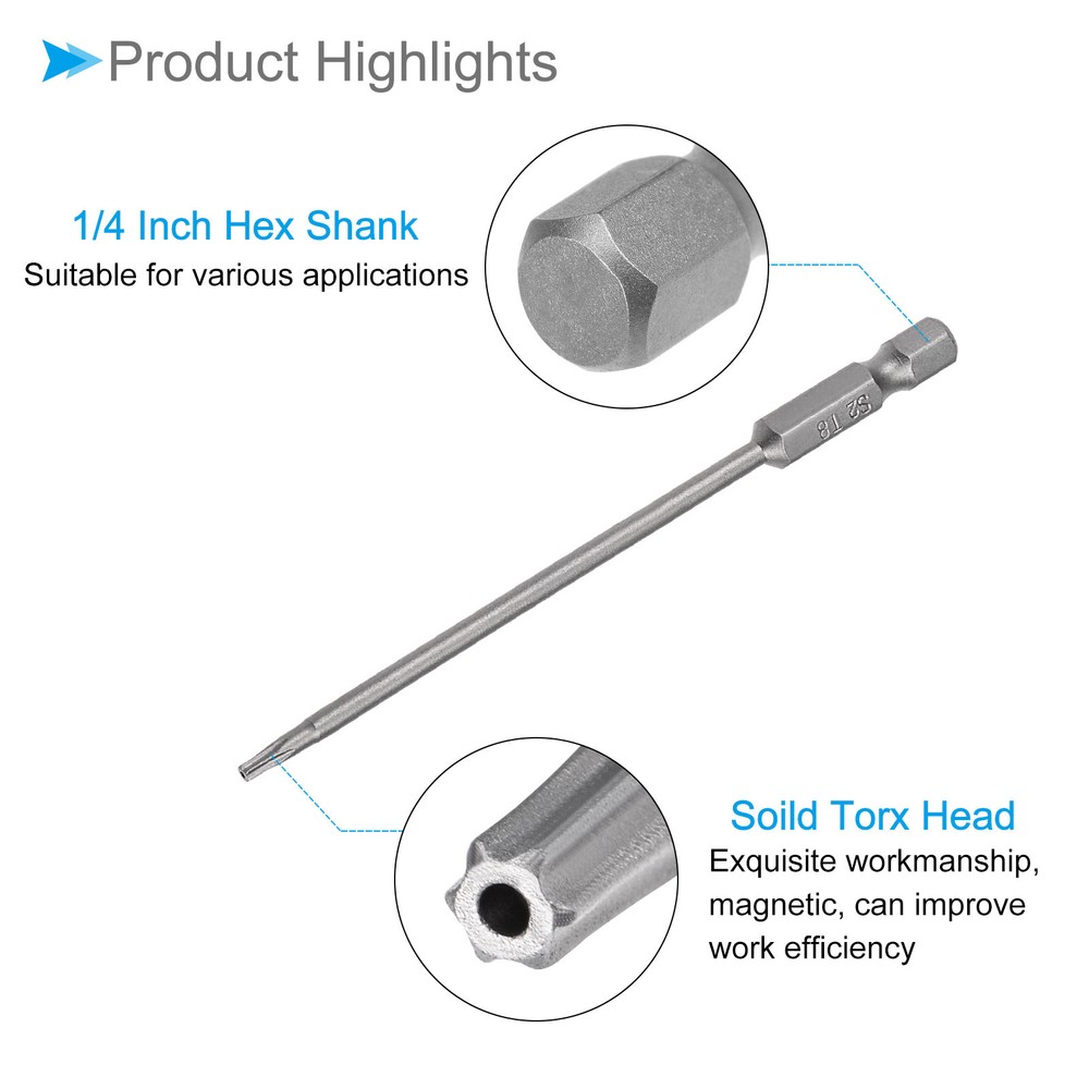 T7 Torx Screwdriver Bit Set 4 Inch 1/4 Hex Shank Magnetic Star Drill 5 Pieces