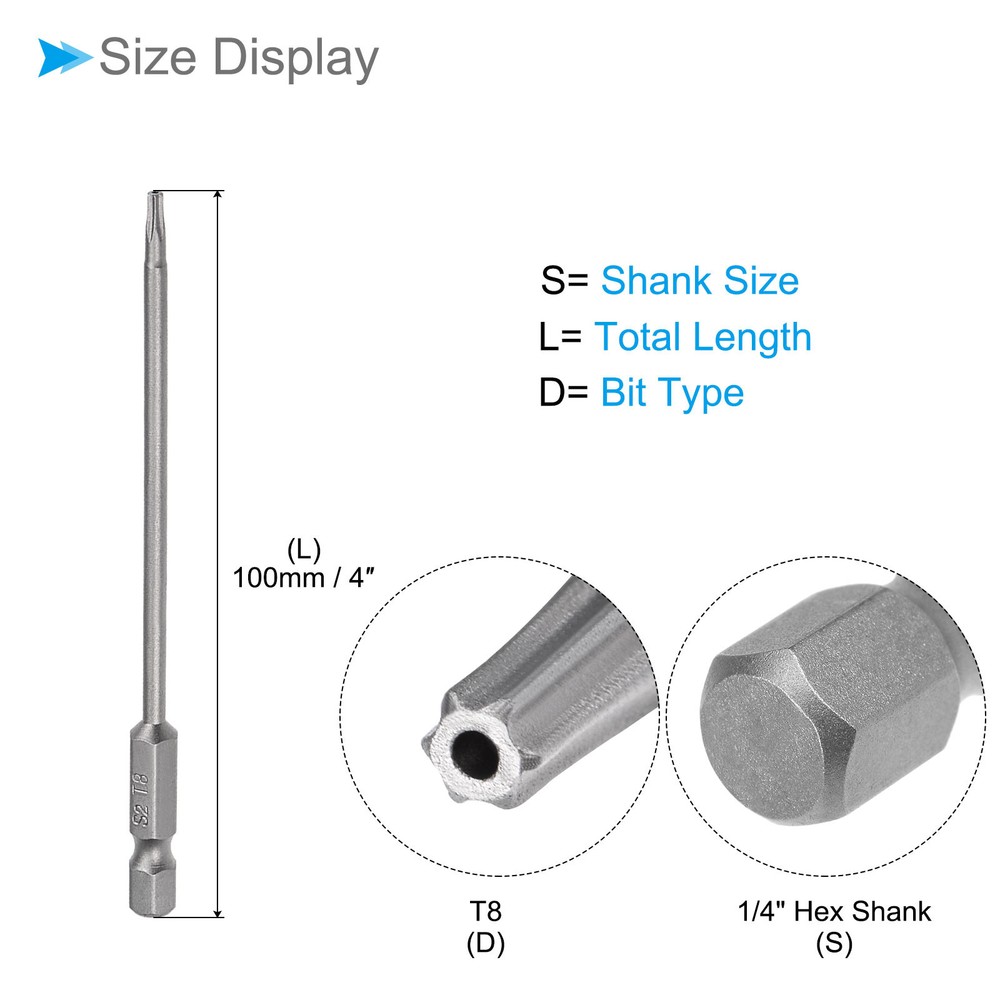 Document Attributes: *Screwdriver Bit Type: T8*Total Length: 100mm / 4 inch*Surface Treatment: Sandblasted*Material: S2What Is Included:* 10 Pieces x Torx Head Screwdriver BitsApplications & Features: -The screwdriver bit is made of S2 steel, which is wear-resistant and impact-resistant, with a hardness of up to 58HRC, and has been sandblasted and surface treated for durability.-These torx screwdriver bits feature a magnetic design that allows them to easily attract and hold screws. This feature ensures convenient installation by securely holding the screw in place before and after fastening, preventing accidental drops or misalignment.Useful Tips:-When using the torx head screwdriver bit, ensure a proper fit with the screw head to prevent stripping or damage. Apply appropriate pressure and torque to avoid over-tightening or under-tightening. Inspect the bit regularly for any signs of wear or deformation and replace if necessary. T8 Torx Head Screwdriver Bit 4" L 1/4 " Hex Shank Magnetic Star Drill 10Pcs Attributes: *Screwdriver Bit Type: T8 *Total Length: 100mm / 4 inch *Surface Treatment: Sandblasted *Material: S2 What Is Included: * 10 Pieces x Torx Head Screwdriver Bits Applications & Features: -The screwdriver bit is made of S2 steel, which is wear-resistant and impact-resistant, with a hardness of up to 58HRC, and has been sandblasted and surface treated for durability. -These torx screwdriver bits feature a magnetic design that allows them to easily attract and hold screws. This feature ensures convenient installation by securely holding the screw in place before and after fastening, preventing accidental drops or misalignment. Useful Tips: -When using the torx head screwdriver bit, ensure a proper fit with the screw head to prevent stripping or damage. Apply appropriate pressure and torque to avoid over-tightening or under-tightening. Inspect the bit regularly for any signs of wear or deformation and replace if necessary. Hot Item Payment 1.We accept eBay payment . 2.Payment must be received within 7 business days of auction closing. Shipping 1.We ship to your eBay or Paypal address. Please make sure your eBay and Paypal address is correct before you pay. 2.Items will be shipped within 1-3 business day when we received payment. 3.Delivery time depends on destination and other factors. Description Policy T8 Torx Head Screwdriver Bit 4" L 1/4 " Hex Shank Magnetic Star Drill 10Pcs Attributes: *Screwdriver Bit Type: T8 *Total Length: 100mm / 4 inch *Surface Treatment: Sandblasted *Material: S2 What Is Included: * 10 Pieces x Torx Head Screwdriver Bits Applications & Features: -The screwdriver bit is made of S2 steel, which is wear-resistant and impact-resistant, with a hardness of up to 58HRC, and has been sandblasted and surface treated for durability. -These torx screwdriver bits feature a magnetic design that allows them to easily attract and hold screws. This feature ensures convenient installation by securely holding the screw in place before and after fastening, preventing accidental drops or misalignment. Useful Tips: -When using the torx head screwdriver bit, ensure a proper fit with the screw head to prevent stripping or damage. Apply appropriate pressure and torque to avoid over-tightening or under-tightening. Inspect the bit regularly for any signs of wear or deformation and replace if necessary. Hot Item Payment 1.We accept eBay payment . 2.Payment must be received within 7 business days of auction closing. Shipping 1.We ship to your eBay or Paypal address. Please make sure your eBay and Paypal address is correct before you pay. 2.Items will be shipped within 1-3 business day when we received payment. 3.Delivery time depends on destination and other factors.