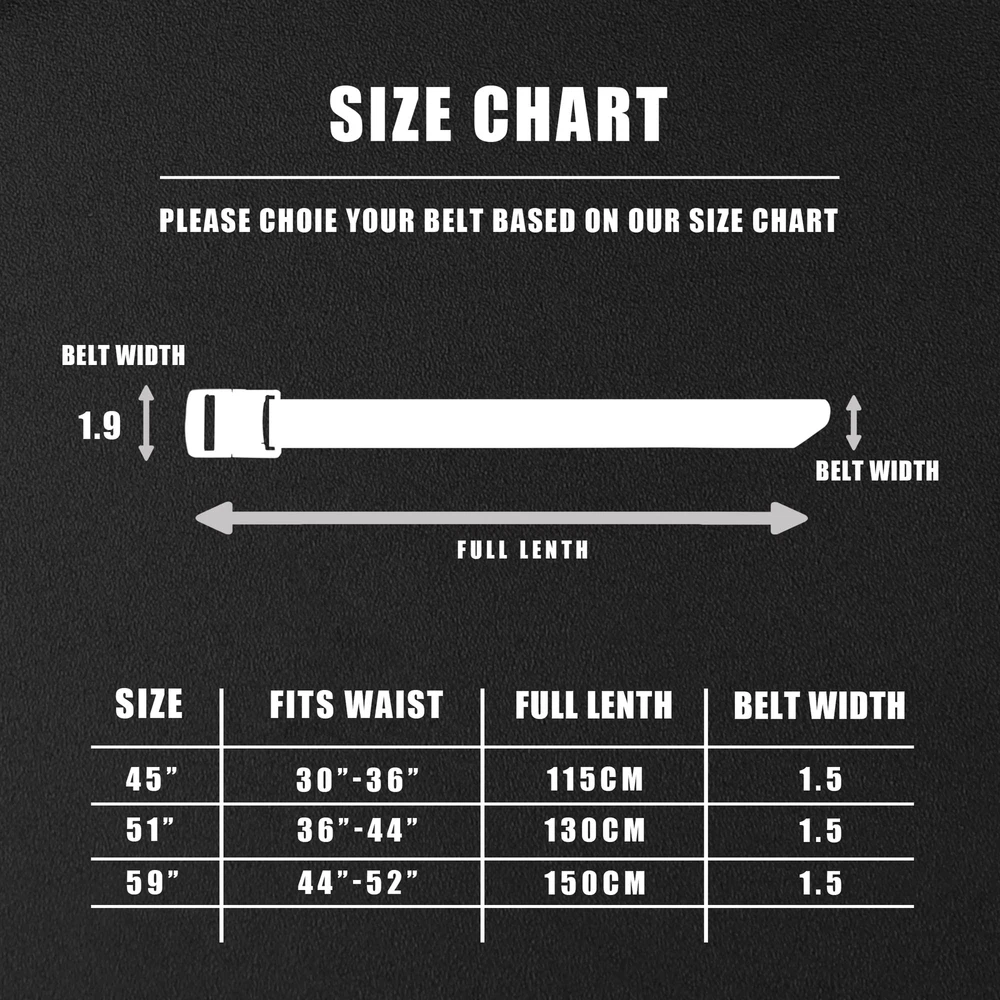 QUICK RELEASE--Creative lock and release design for a much easier and faster mechanism, one-handed operation for unlimited adjustments and replacements HEAVY DUTY--The sturdy nylon strap holds your waist securely, is easy to conceal carrying like guns and other work tools, and supports movement during exercise and heavy working. KEEPING FIT--Nylon straps are elastic to accommodate waist changes in different occasions such as: No need to sit or climb and adjust from time to time before or after lunch. It's also a custom-fit construction. Just unbuckle and cut the strap so you don't have to worry about getting the wrong size just by buying a little longer. BUILT TO LAST--YKK buckle with simple mechanism on pure nylon strap, it is an easy belt for you to go through all the rough situation. LIGHT-WEIGHT--The upgraded design retains the buckle's sleek construction and improves performance, but reduces weight and makes it more comfortable with the pants on.