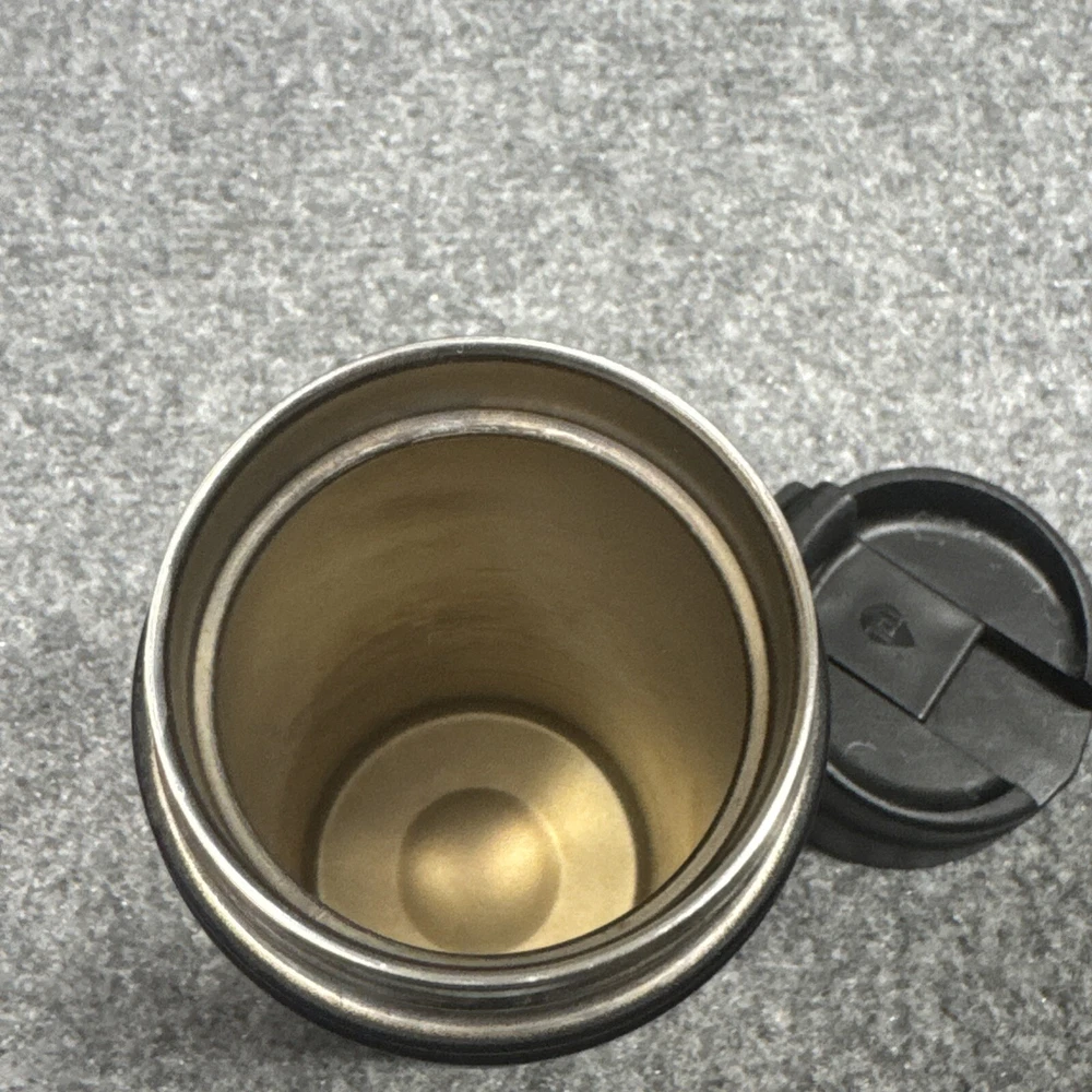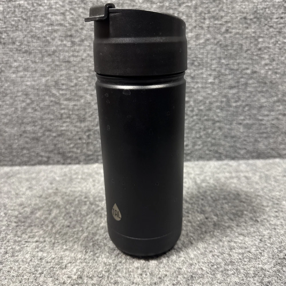 This Tal Stainless Steel Ranger Coffee Travel Mug holds 18 oz of liquid and comes in a sleek black color. It is made of stainless steel, making it durable for on-the-go use. The mug is designed for travel convenience and features a vacuum seal to keep beverages hot or cold. Additionally, it contains a warning about potential reproductive harm as per California Prop 65 regulations.