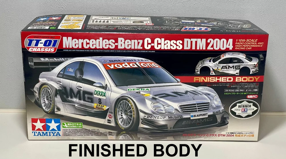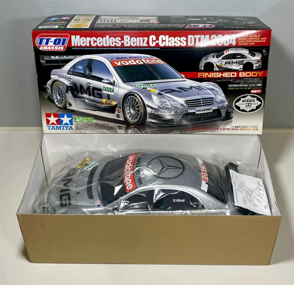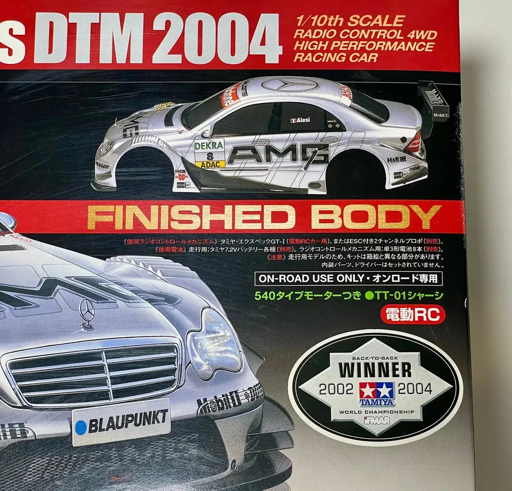 New TAMIYA 58341 1/10 R/C Racing Car Mercedes-Benz C-Class DTM 2004 Finished Body with TT-01 Chassis kit. Vintage Hard To Find! Experience the thrill of racing with this Tamiya 1/10 scale Mercedes-Benz C-Class DTM 2004 model car. This hobby grade, unassembled kit features a finished body and is perfect for on-road touring car enthusiasts. The silver color and vintage design add to its collector's appeal. Crafted in Japan, this TT-01 Chassis model car requires assembly and is powered by electric brushed motor. The 4WD vehicle is recommended for all types of surfaces and is ideal for those who enjoy radio control and control line toys. Get your hands on this Mercedes-Benz C-Class DTM 2004 model car today and start racing like a pro!