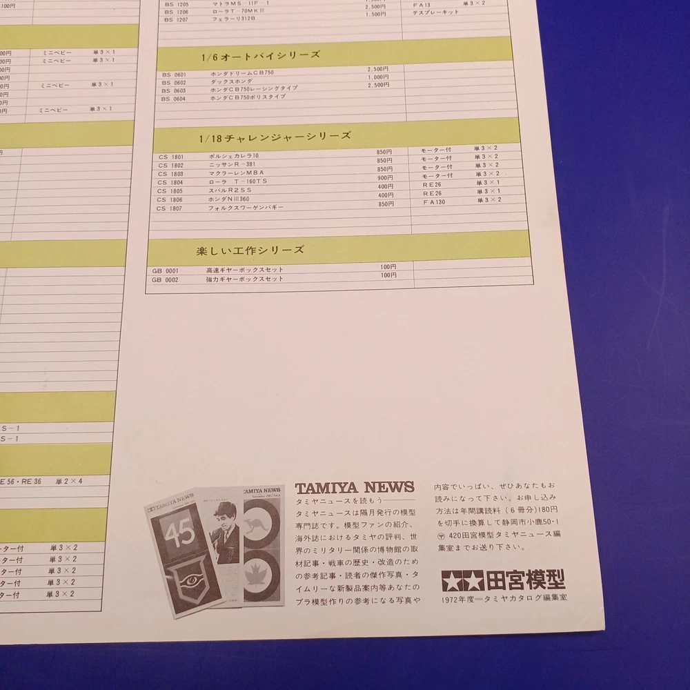 Description About This Items This is the 3rd issue of the catalog published by TAMIYA! Condition Not in bad condition. There are some paper changes over time. Shipping Shipping is only available to the address registered in eBay. If you want us to send another address, please change your address on eBay and then place an order. We do not mark merchandise values below value or mark items as ?gifts? ? Japan, US and International government regulations prohibit such behavior. About Importer's Obligation Import duties, taxes, and charges are not included in the item price or shipping cost. These charges are the buyer's responsibility. Please check with your country's customs office to determine what these additional costs will be prior to bidding or buying.