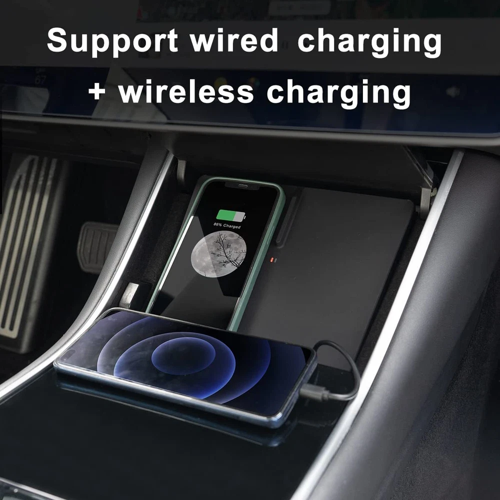 TAPTES Wireless Charger for Tesla Model 3 2017 2018 2019 2020 Accessories,Wireless Phone Charging Pad Car Interior Center Console Accessories for Any Enable Phone(Pre-June 2020) Description Features: Multiple functions:wireless chargers for model 3 not only support wireless charging,but also have a USB Type C wired charging cable at the bottom,which supports wired charging, and can be hidden when you not in use New Version Wireless Charger:New Version TAPTES for Tesla Model 3 wireless charger allows your phone being charged Vertically or Horizontally Compatibility:fits vehicle's center console of 2 Model 3 Standard Range Plus/Mid Range/Long Range/Performance Charging Note:If too thick phone case, please remove the case, if not charging, please check whether there are coins, IC cards and other metals between the phone and charger Dual Independent Wireless Charging:The two microUSB cables are removable, support both side or one side (left or right) working mode,charge 1 phone by 1 USB input, charge 2 phones by 2 USB input Product Details: Brand: TAPTES Connectivity Technology: USB Connector Type: USB Type C Compatible Devices: Cellular Phones Compatible Phone Models: Apple iPhone XS Included Components: Wireless Charger / Pad Gen 2, Manual, 2 x USB Splitters Special Feature: Wireless Charging Your Phone Horizontally or Vertically., Built with a USB Type-C Cable for Android Cellphone Cable Charging. See more Color: New Version Input Voltage: 5 Volts Mounting Type: Tabletop Mount Manufacturer: TAPTES Brand: TAPTES Item Weight: 1.19 pounds Package Dimensions: 8.35 x 7.87 x 1.26 inches Country of Origin: China Item model number: TS00Y000179-1 Manufacturer Part Number: TM3-02-1 Special Features: Wireless Charging Your Phone Horizontally or Vertically., Built with a USB Type-C Cable for Android Cellphone Cable Charging. Amperage: 1.5 Amps Wattage: 5 watts Date First Available: August 27, 2019 Handling We will ship all orders within 3 business days of payment. Delivery We do not ship outside of the Continental US. Feedback We take our reputation seriously, we buy and sell online, so we understand the value of trust. If you are unsatisfied with your order, please contact us and we will work with you to resolve it to your satisfaction.