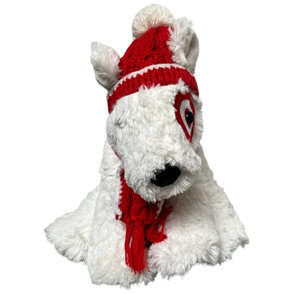 TARGET 12" Bullseye Mascot Plush Dog Stuffed Animal Christmas Red Knitted Scarf