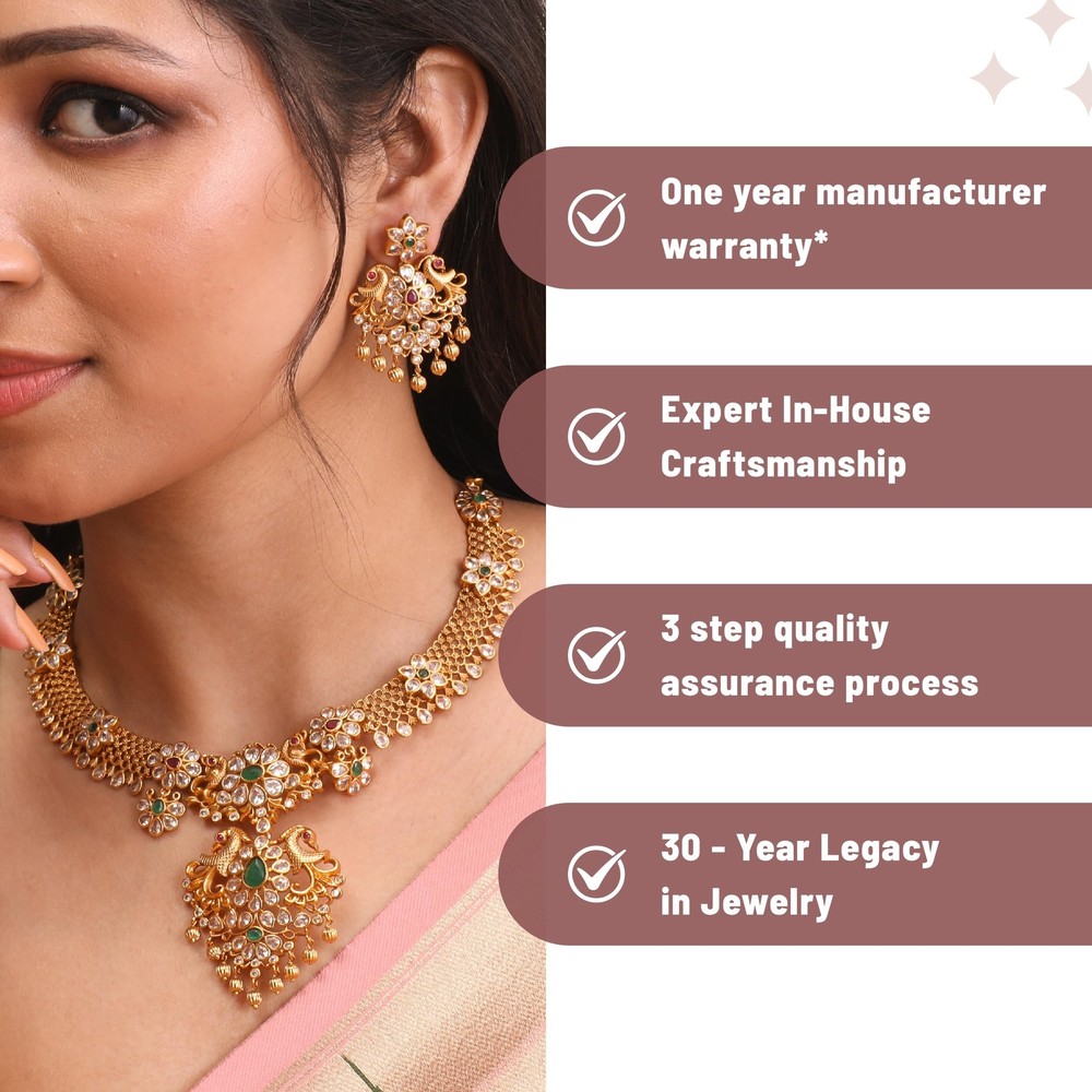 TARINIKA Antique Gold Plated Vira Short Necklace Set with Floral Design - Indian Jewelry Sets for Women | Perfect for Ethnic Occasions | Traditional South Indian Necklace | 1 Year Warranty* Product Details Package Dimensions : 8.78 x 6.61 x 1.54 inches; 9.59 ounces Department : womens Date First Available : May 28, 2021 Manufacturer : TARINIKA Country of Origin : India Brand, Seller, or Collection Name: TARINIKA Metal: gold plated brass Material: Brass Gem Type: Cubic Zirconia Chain: Rope Clasp: Fishhook Clasp Number of stones: 50