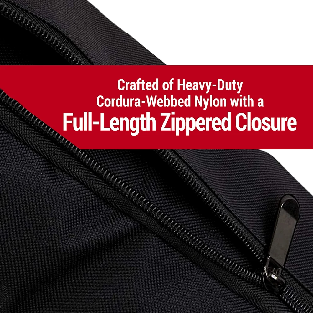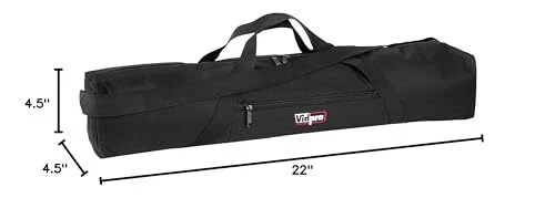 The TC-22 Padded Tripod Case is made to carry a tripod (including head) up to 22" long. This case is made of Heavy-Duty Cordura Nylon with handles, large zippered exterior pocket and shoulder strap. Durable Construction: Crafted from heavy-duty Cordura-webbed nylon for long-term use. Spacious Interior: Measures 4.5" H x 4.5" W x 22" L to hold tripods up to 22 inches in length. Easy Carrying: Equipped with carrying strap handles and shoulder strap for convenient transport. Protective Features: Full-length zippered closure and zippered exterior pocket to shield equipment from dust and weather. Quality Guarantee: provides extensive warranties to ensure customer satisfaction.