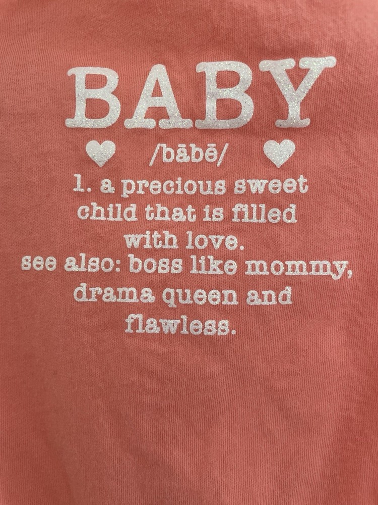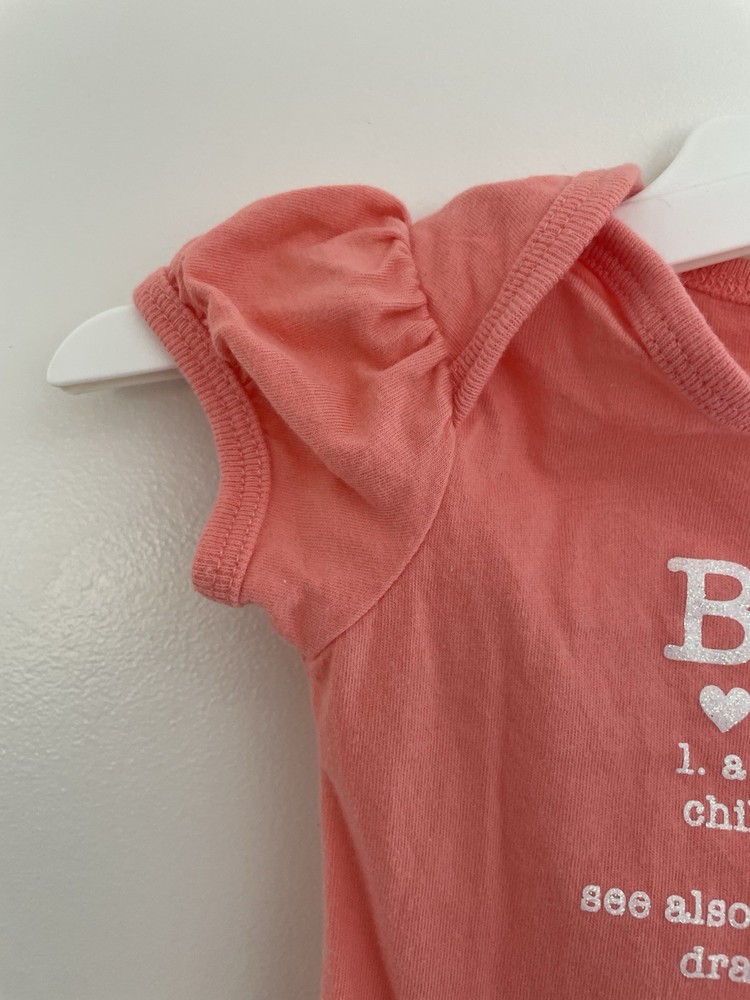 The Children's Place Baby Girls Glitter Baby Graphic 100% Cotton Short Sleeve Bodysuit Coral 0-3M. Condition is pre-owned. Smoke free, pet free home. Shipped via USPS Ground Advantage. In very good condition. Free of rips or stains.