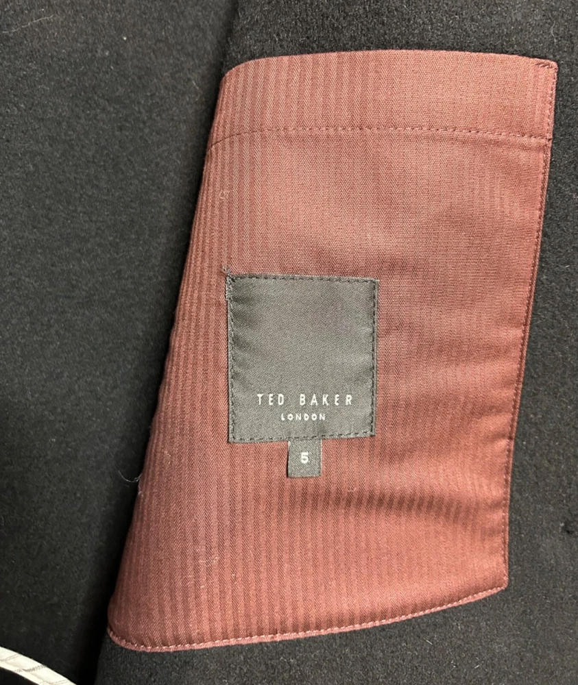 BRAND NEW Men's Black wool blend pea coat from TED BAKER Model: Atllas RRP £325 Cut from super soft wool blend fabric Double breasted button fastening Part lined in cotton Front pockets Material: 70% wool 30% polyamide Lining: 100% cotton Label size: TB5 X Large Garment measures: Pit to pit: 26" Pit to hem: 15.5" Neck to hem: 28" Pit to cuff: 17" Stock ref: NP 2430 /24014 /07114