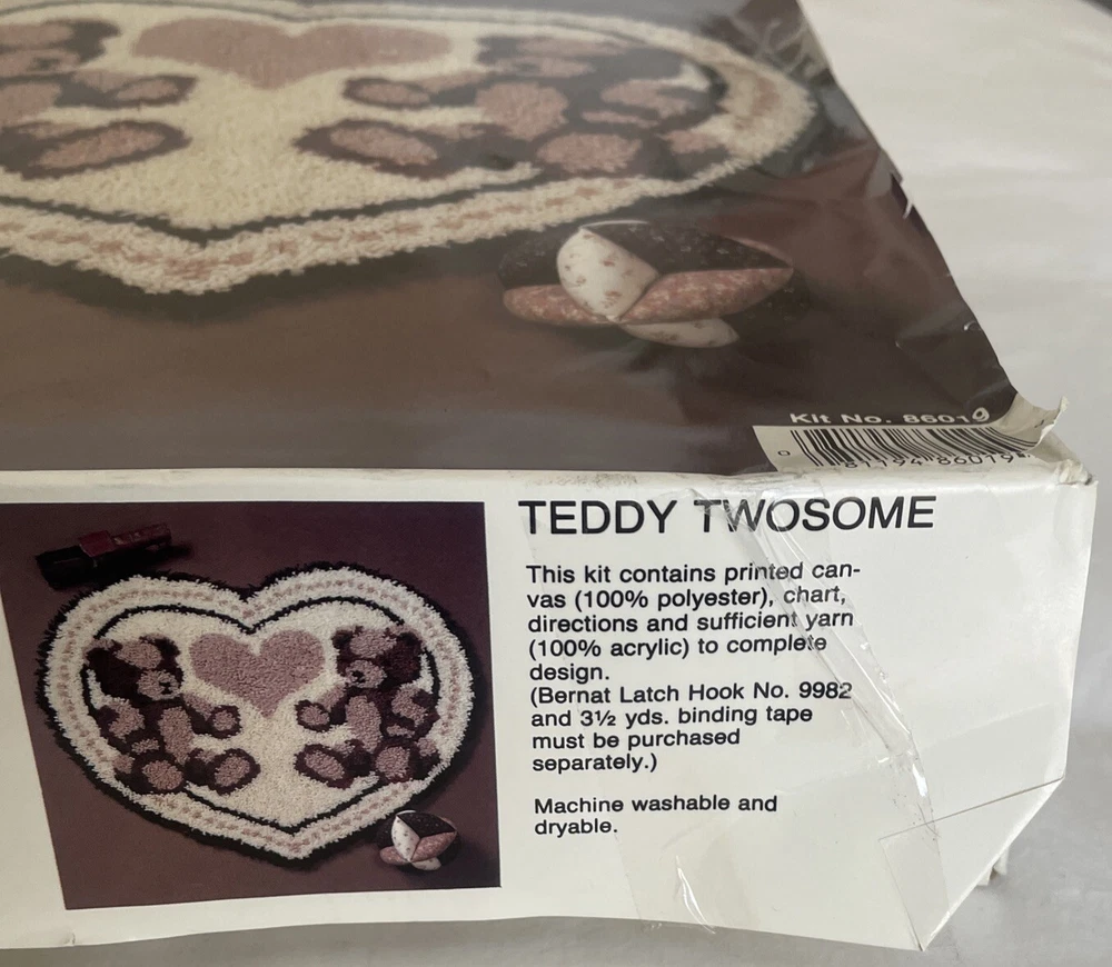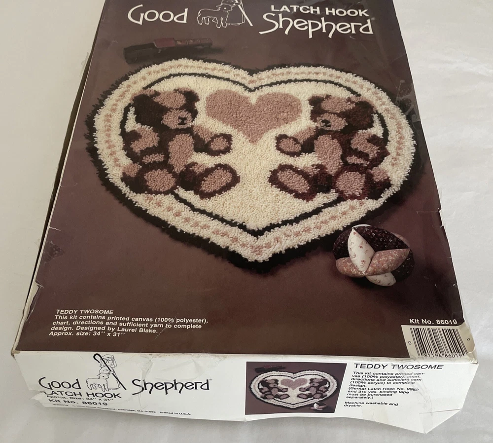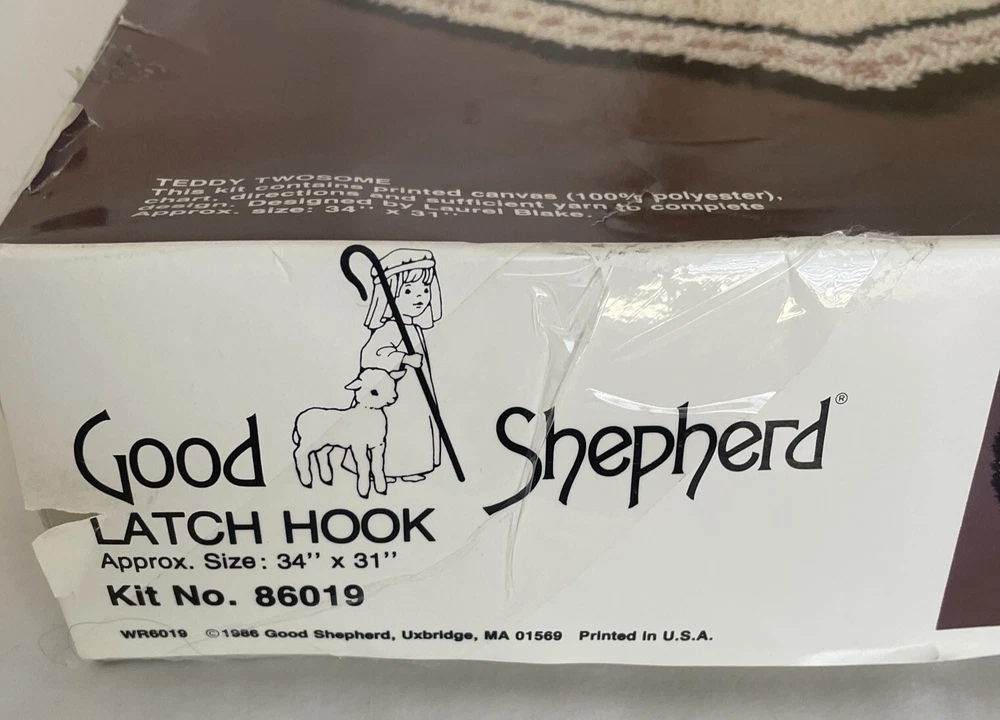 Pre-Owned, Open Box "TEDDY TWOSOME" Bear 1986 # 86019 Good Shepherd Latch Hook Kit 34"x 31" Please note that this is a pre-owned item and shows wear consistent with normal use and age. Unused in open box, box is damaged. Please examine the photos carefully and request more photos if needed. Please feel free to ask questions if in doubt. Please see the photos for the condition of the item(s). Smoke free home. Thank you for your interest. Whenever possible, I use recycled shipping material which a local business saves for me or from my own online purchases. Recycling shipping material aids in reducing the waste that is filling up our landfills. BUYERS: When you purchase one of our items, it is understood that you have read this complete listing description and fully acknowledge and accept what you're buying and the terms of sale. We would appreciate it very much if you're not satisfied with your purchased item, that you would contact us first to resolve any issues prior to leaving derogatory feedback. Our reputation here at eBay is very important to us, and we want you to be happy with your purchase. We strive to offer the very best service to our clientele. Thank you!