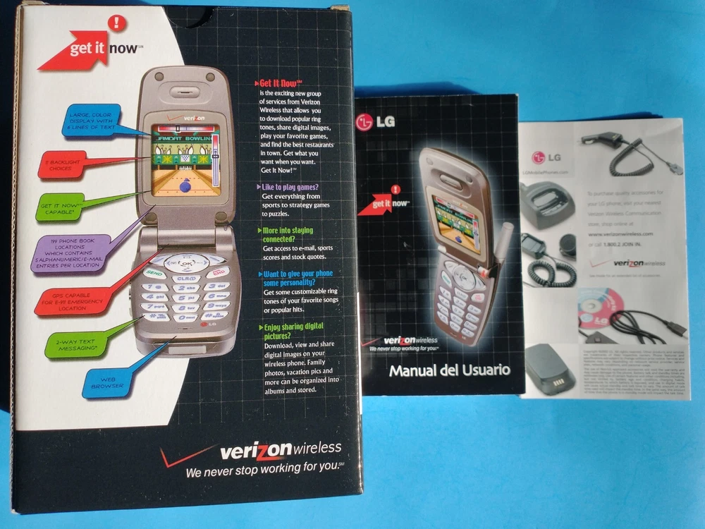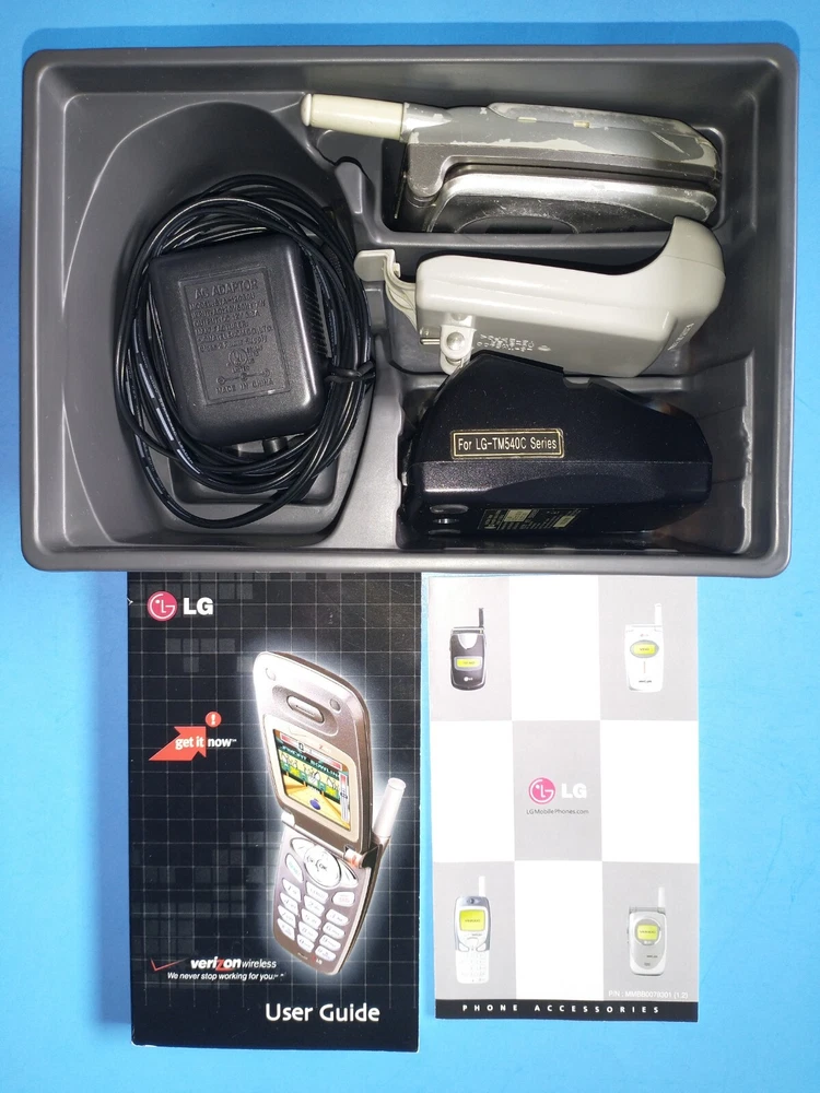 This listing is for a LG flip phone Model VX4400 of which I am the original owner. The phone has been tested and operates perfectly. The main reason for this listing is the original pristine box, original pristine user guide and functional charging cradle and charger. I am including the phone in this listing because someone may have a case with an inoperative phone and swap cases since this phone works fine. In addition to the phone the following items are included in the sale: (1) Original box (2) Original charger with cradle (3) Original user guide (4) Two batteries (5) Original belt clip(broken hinge) Although the phone has been used and has numerous signs of wear mostly worn paint and small dents in the front left corner and on the face (photos 16 and 17) it operated perfectly when last used. I have not been able to make a call with it recently because it is 2G. In addition, the original belt clamp has a broken hinge, shown in photo 18. As shown in photos (5&7) the battery is fully charged but it may not last long. This phone is primarily for collectors and not able to make calls because it is for a 2G system. Shipping will be by USPS Ground Advantage. Please ask questions prior to purchase. Thanks for looking.