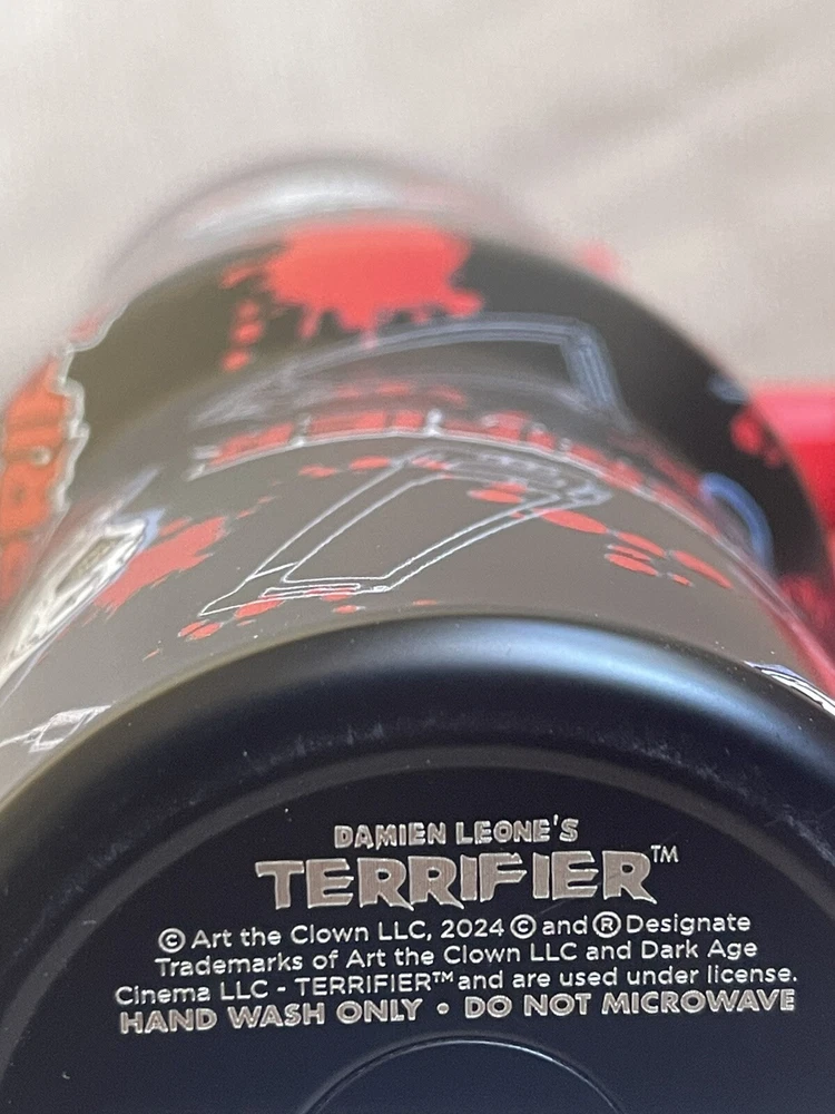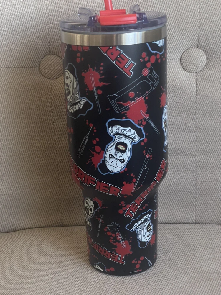 Damien Leone’s TERRIFIER Art the Clown Stainless Steel Blood Splatter Travel Tumbler Cup with Lid and Straw NEW