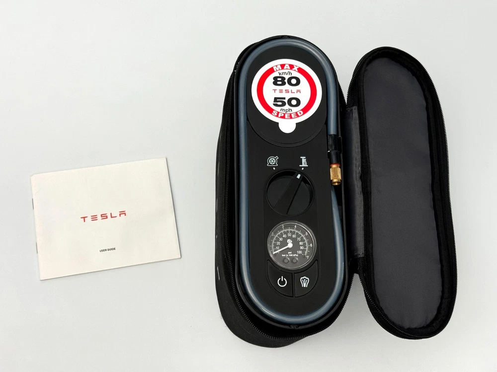 Excellent condition, fully functioning, pre-owned Tesla tire pump / repair kit. Has been used for inflating tires; repair function (foam) unused and intact. Comes with original carry case that has a velcro strip on the outside to stop it slipping around in your trunk. Ships same or next business day via USPS Ground Advantage (cheapest option).