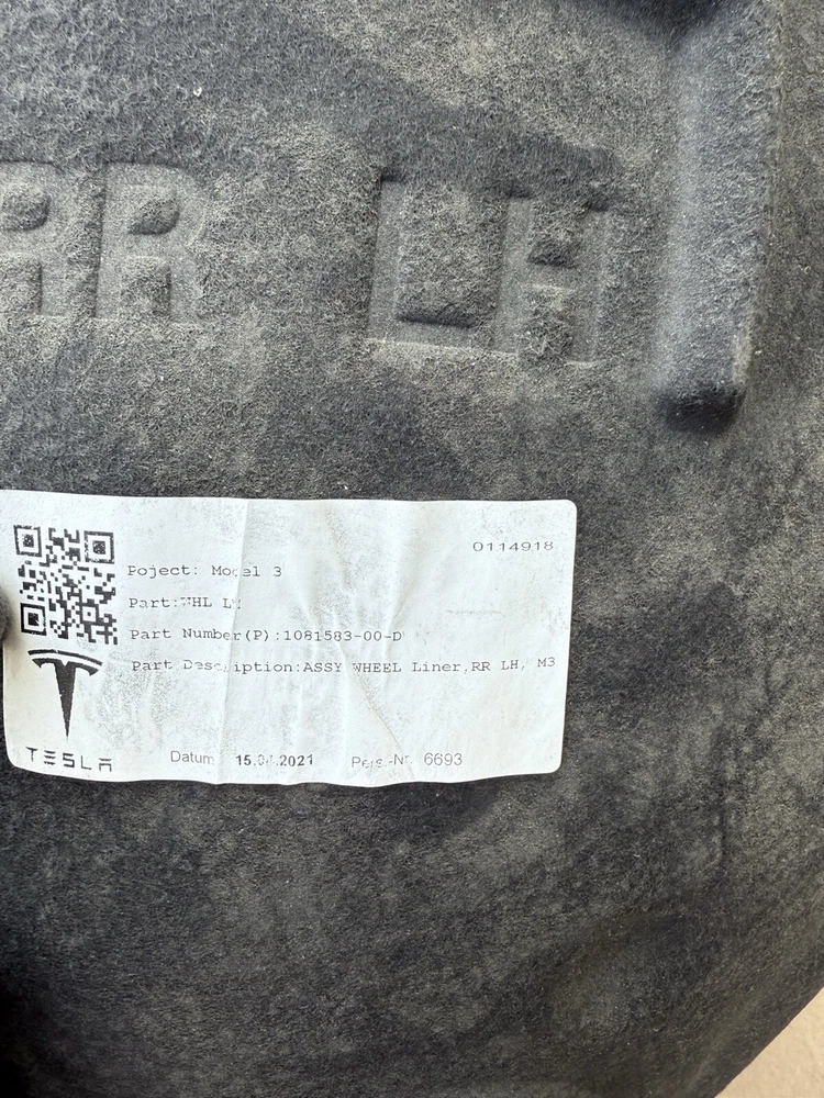 TESLA MODEL 3 MK1 2017-2024 LEFT REAR INNER WHEEL ARCH LINER 1081583-00-C. Состояние товара: Used. Отправлен: USPS Ground Advantage.