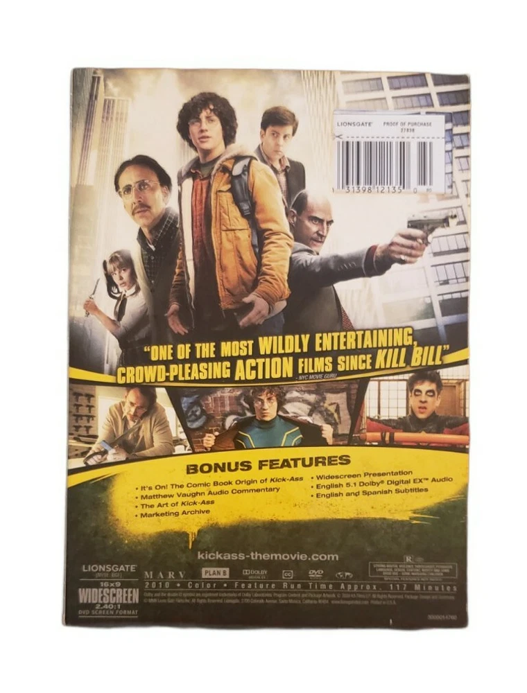 UPC: 0031398121350 Movie/TV Title: Kick-Ass DVD Nicolas Cage NEW Release Year: 2010 DVD edition year: 2010 Actor: Nicolas Cage Studio: Lionsgate Region Code: 1 Sub-Genre: Superhero MPN: A027838 gtin13: 0031398121350 Format: DVD