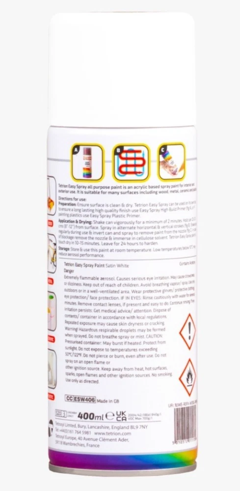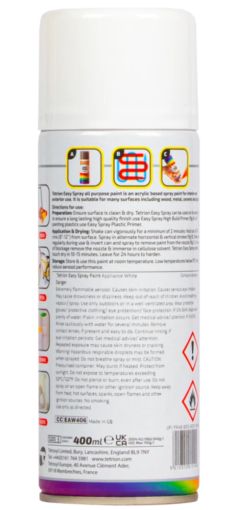 Powered by Frooition Helpful Links Add to Favourite Sellers Sign up to Newsletter View Feedback Contact Seller Visit seller's eBay Shop About Seller Page clearance DIY Tools Home Appliances Outdoor & Garden Kitchen & Homeware Toys & Games Sporting Goods Health & Beauty Baby & Toddler Electronics Musical Instruments Tetrion Easy Spray Paints 400ml Tetrion Easy Spray Paint 400ml Fast Delivery Secure Payments Ask a Question Follow SuperGift More Items! View more great items 2 X 400ML STOVE PAINT HEAT RESISTANT BLACK MATT SPRAY PAINT HIGH TEMPERATURE £12.99 SPRAY PAINTS ALL PURPOSE AEROSOL MATT GLOSS SATIN PRIMER GLITTER NEON METALLIC £5.75-£10.95 300ML WHITE RADIATOR PAINT GLOSS FINISH PAINT TIN QUICK DRYING FOR METAL PAINT £6.99 2 X 300ML BRILLIANT WHITE RADIATOR SPRAY PAINT HEAT RESISTANT QUICK DRY AEROSOL £10.95 Item Description TETRION EASY SPRAY PAINTS 400ML Refresh and enhance a wide range of surfaces with this Tetrion easy-apply colour coating. Designed for smooth coverage and everyday DIY projects on multiple materials. Features: ✅ 400ml Can: Ideal size for home improvement and craft projects ✅ Acrylic Based Formula: Provides an even, consistent finish ✅ Multi-Surface Use: Suitable for metal, plastic, and wood surfaces ✅ Easy Application: Designed for smooth, controlled coverage ✅ Wide Colour Range: Available in multiple colour options Item Specification Brand Tetrion Colour Multi Material Liquid Type Spray Paint Weight 400ml EAN 5010372015194 MPN TET-APP-WHI-1 About Us About Us Delivery Returns Terms Contact About Us Discover SuperGift utilising the latest technologies to make your shopping experience even better. Our pages are fully responsive and offer a unique online shopping experience such as frequently bought items and recommended gifts. We want to be the first to know all about your needs, and that's why we have SuperGift online Browse our store and search your next needed product. Delivery Delivery Please be advised that bulk order may require palletising. In the event this occurs, the courier will contact you to discuss how to move forward. If you have any issues, you can also contact us. Please be aware while we guarantee that we will dispatch your order however we cannot be held responsible for any delays with the courier. All orders are dispatched with Royal Mail or DPD local. Dispatch time - Same day if ordered before 2pm (working days only) Important information: We are only able to dispatch your order to the address registered on your PayPal account at the time of payment. Please ensure any address changes are updated prior to ordering. If you live in any of the following regions, your delivery may have a higher cost: Scottish Highlands, Orkney, Shetland and Western Scottish Islands and Northern Ireland. We are not able to ship to: BFPO Channel Islands Republic of Ireland (Eire) Isle of Man Please be aware that in certain circumstances our couriers are unable to deliver to some postcode areas. In this instance we will cancel and refund your order. ? All delivery times are subject to change, especially during peak periods. Returns Returns SuperGift Cancellation Returns and Refunds Policy At SuperGift we strive to ensure that our customers enjoy an outstanding online shopping experience. Occasionally our customers may need assistance and our Customer Services Team will do their best to support and assist in any way necessary. Returning an item to SuperGift I have changed my mind and would like to return my purchase To return an item(s) please notify Customer Services at SuperGift by email via My eBay. Please state the order number and a reason why you may wish to return the product to us. Please allow up to 48 hours for a response. The returned goods do not need to be in their SuperGift packaging however they need to be in their original, sellable condition. Please include a note within the returned package with a reason for return (even if you have just changed your mind) as well as your name and address. Buyers have 30 days to return a product to SuperGift for a refund or an exchange. Return postage is at the buyers own cost and risk. Our returns policy does not affect your statutory rights. Faulty or Damaged Items My item has arrived damaged or faulty If your purchase arrives damaged or faulty, please contact SuperGift within 7 days of receiving the item. Customer Services at SuperGift will be happy to support customers in resolving such issues. You may be asked to provide photographic images of the damage or product fault for Customer Services to investigate and resolve. By providing these, Customer Services can suggest the most appropriate resolutions. If asked to return a damaged or faulty item, SuperGift are responsible for the cost of postage. Customers have 30 days from purchase to return a faulty or damaged item to SuperGift for an exchange (stock permitting) or refund. If you return goods claiming they are defective, we will examine the returned goods and will notify you of your refund via e-mail. We will process the refund as soon as possible. If a refund or reimbursement is payable to you, we will transfer the money using the same method originally used by you to pay for your purchase. Please note, if SuperGift organise for a courier to collect a faulty / damaged item from your home and they are unable to access the item, a fee of £15.00 will be deducted from the total refund given. My item has developed a fault within 30 days of delivery. Within 30 days of the receipt of goods (or for perishable goods within their use by date) you will be offered the choice of a repair, replacement or full refund. If your item develops a fault, please notify Customer Services via My eBay. Once again, Customer Services may ask for photographic images of the damage or fault so that they are able to resolve the issue appropriately. We will offer either a refund including postage costs, or a replacement product (stock permitting). The refund or replacement wil