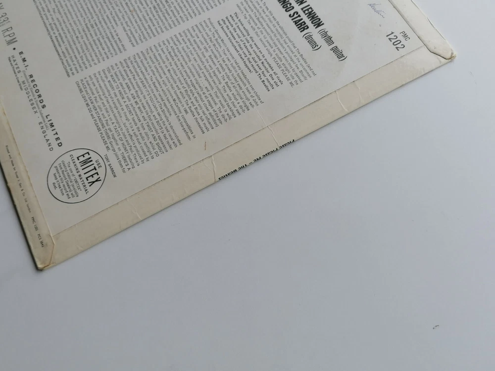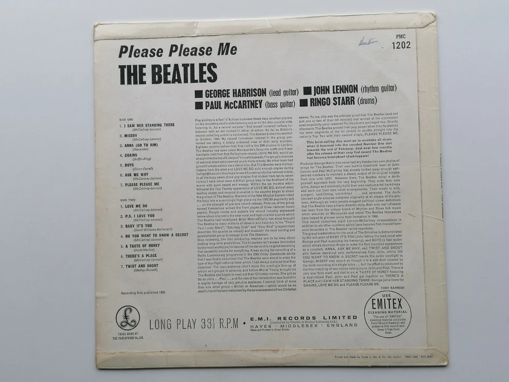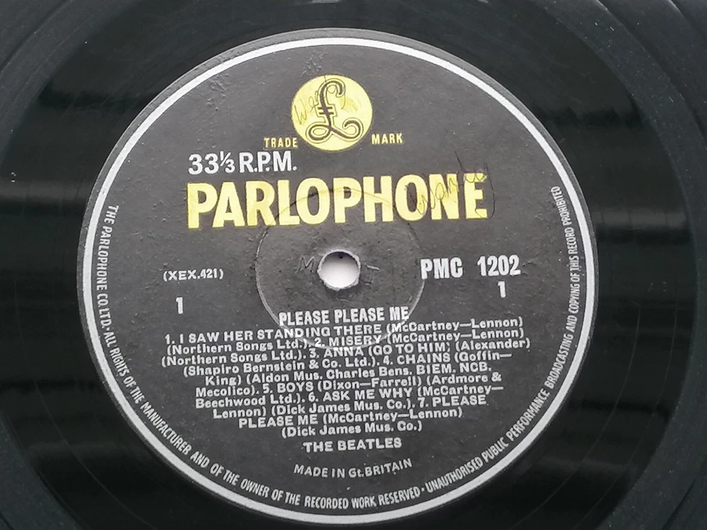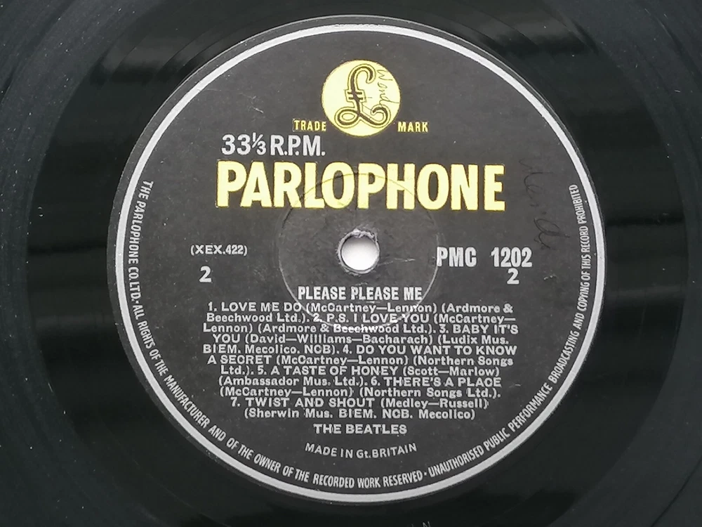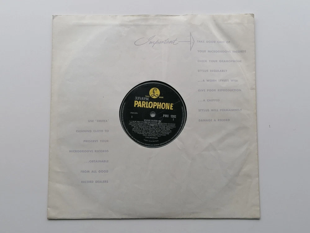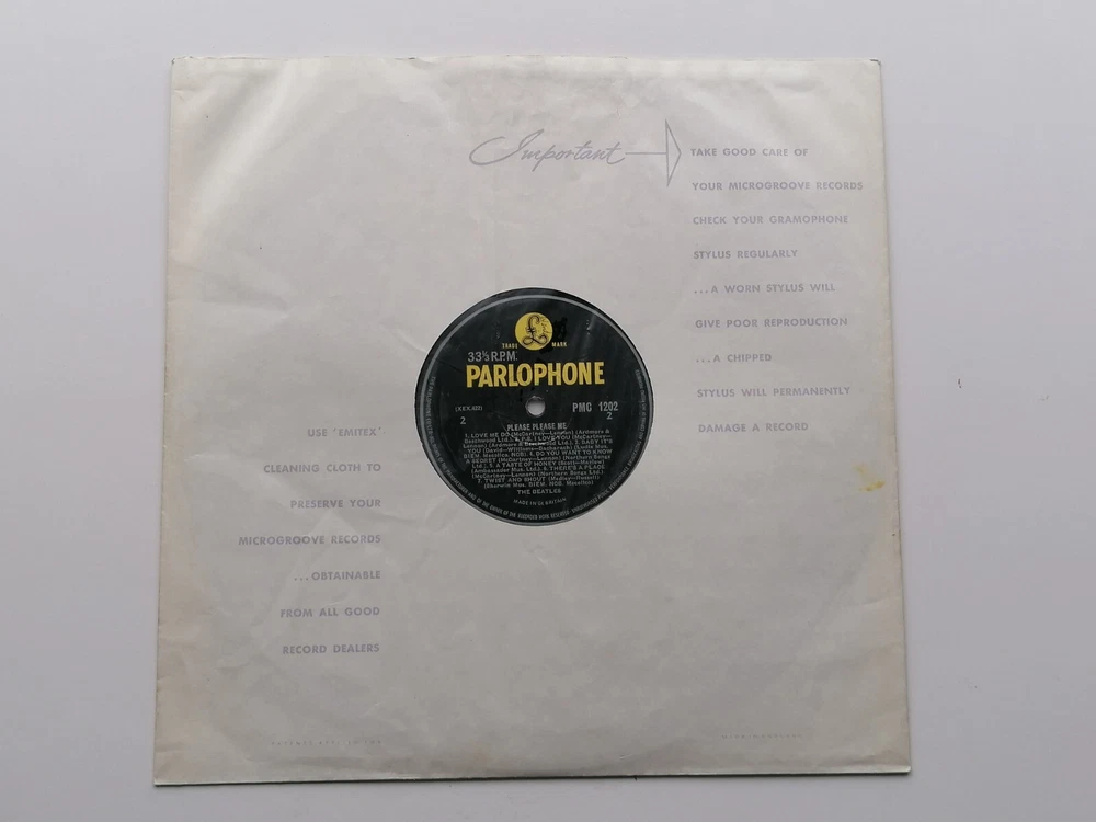 paddysgoose Store THE BEATLES ORIGINAL 1963 UK LP PLEASE PLEASE ME PARLOPHONE PMC 1202 PARLOPHONE CO EDGING NO DATE ON LABEL MT TAX CODE SIDE 1 THE LABELS ARE CLEAN , SMALL INITIALS VERY FAINT NAME BOTH SIDES , THE VINYL IS A STRONG VERY GOOD PLUS OVER BRIGHT AND CLEAN, NICE SHINE , FEW VERY LIGHT MARKS, PLAYS VERY GOOD PLUS THE SLEEVE IS GOOD PLUS , THE FRONT SLEEVE IS CLEAN AND BRIGHT, THE TOP AND BOTTOM SEAMS ARE VERY GOOD PLUS, THE SPINE IS, STILL CLEAR AND READABLE, THE BACK SLEEVE IS VERY CLEAN , VERY SMALL NAME THE FLIP OVER SEAMS ARE VERY GOOD PLUS COMES COMPLETE WITH ORIGINAL EMITEX INNER SLEEVE IN VERY GOOD PLUS CONDITION THE MATRIX AND STAMPERS ARE SIDE ONE XEX 421-1 STAMPERS 2 A G SIDE TWO XEX 422-1 STAMPERS 1 2 R T