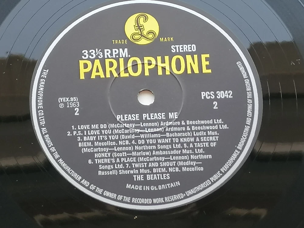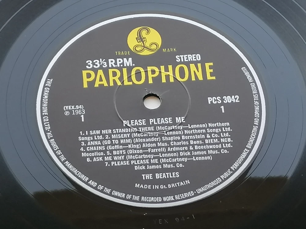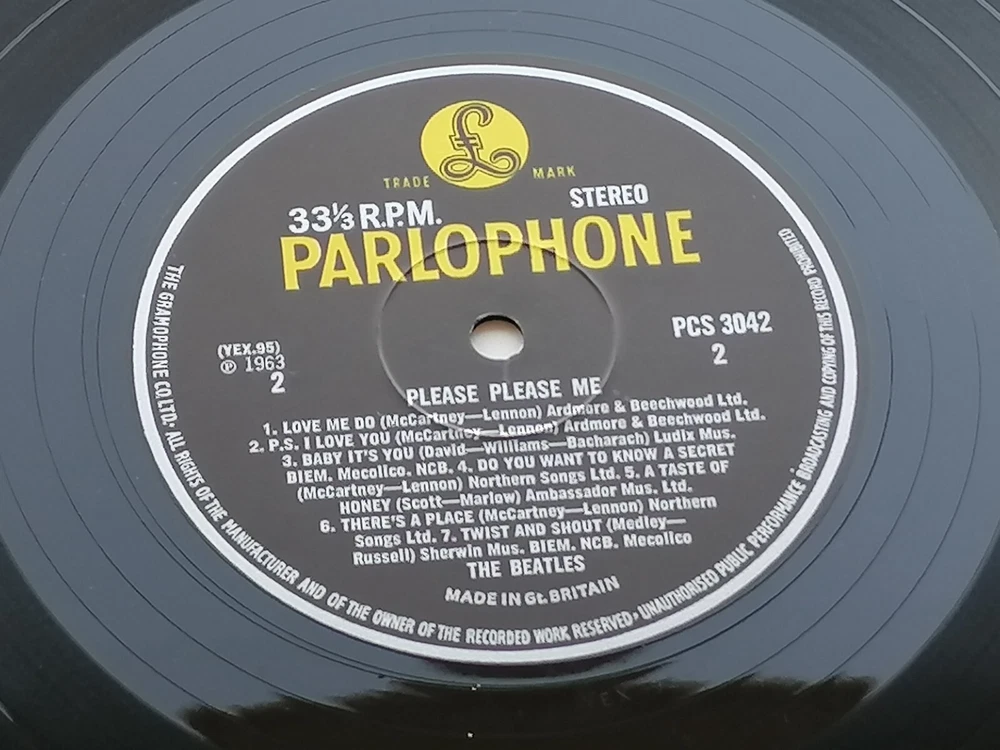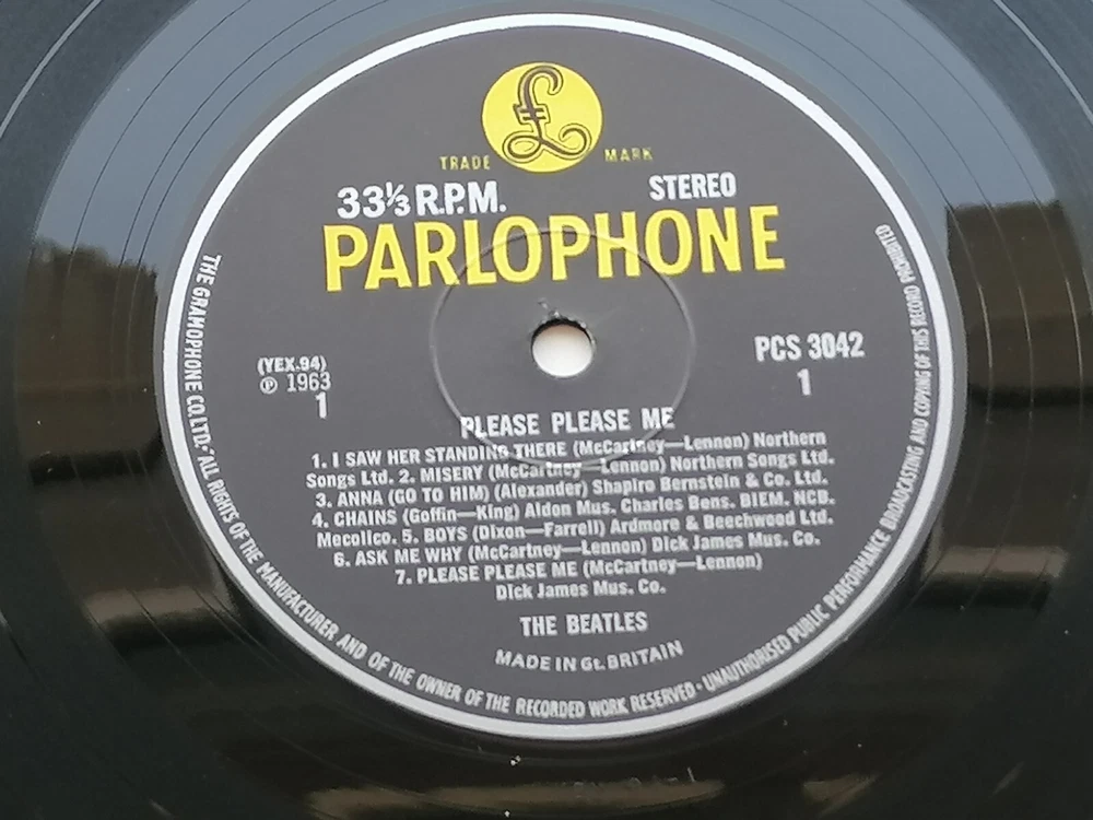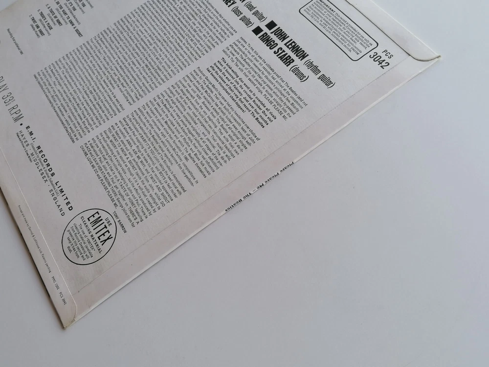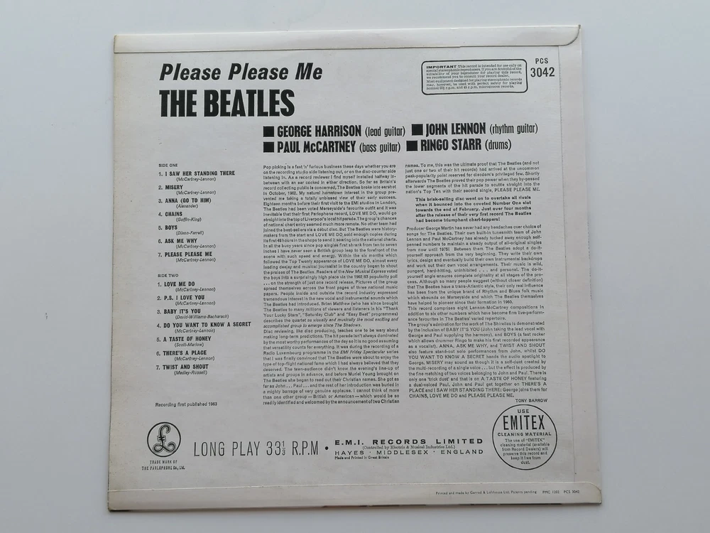 paddysgoose Store THE BEATLES PLEASE PLEASE ME UK STEREO LP 1969 STEREO PARLOPHONE PCS 3042 THE LABELS ARE EXCELLENT CLEAN , NO WRITING, THE VINYL IS EXCELLENT, VERY BRIGHT AND CLEAN, LOVELY SHINE ,PLAYS EXCELLENT THE SLEEVE IS A GARROD AND LOFTHOUSE THE SLEEVE IS NEAR EXCELLENT , THE FRONT SLEEVE IS VERY CLEAN AND BRIGHT , THE TOP AND BOTTOM SEAMS ARE EXCELLENT, THE SPINE IS EXCELLENT VERY CLEAR AND READABLE, THE BACK SLEEVE IS VERY CLEAN, THE FLIP OVER SEAMS ARE EXCELLENT COMES COMPLETE WITH ORIGINAL EMITEX ADVERTISEMENT INNER SLEEVE IN VERY GOOD PLUS CONDITION THE MATRIX AND STAMPERS ARE SIDE ONE YEX 94-1 STAMPERS 2 M G SIDE ONE YEX 95-1 STAMPERS 1 A T